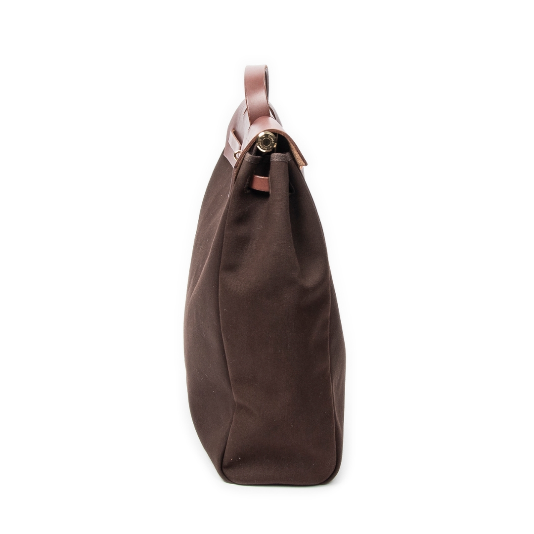 A vintage Hermès Herbag 2-in-1 crafted in rich brown canvas, complemented by tonal leather trim and handle for a refined, understated aesthetic. This classic design showcases the Maison’s signature structured silhouette, complete with the iconic flap closure and Clou de Selle fastening. The deep, earthy tones offer timeless versatility, making it an effortless choice for both everyday wear and more considered styling.