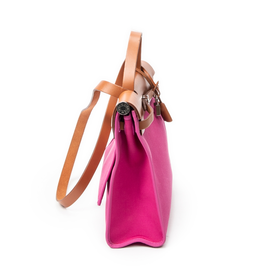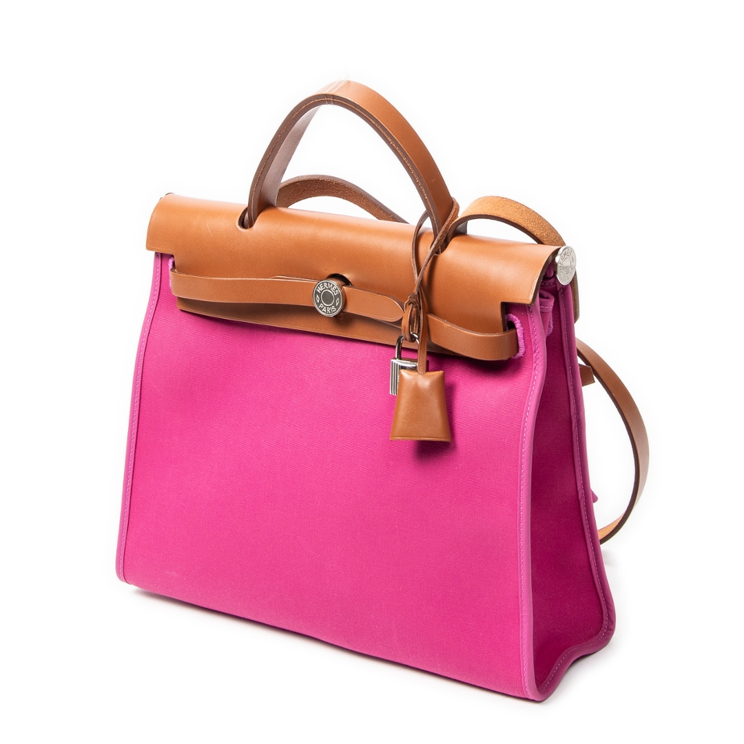 A vintage Hermès rose purple canvas Herbag Zip bag, a striking and contemporary take on one of the house’s most recognisable designs. Crafted from vibrant rose purple canvas with smooth tan calf leather detailing, this piece combines bold colour with classic Hermès structure, finished with the signature Clou de Selle closure and refined top handle.