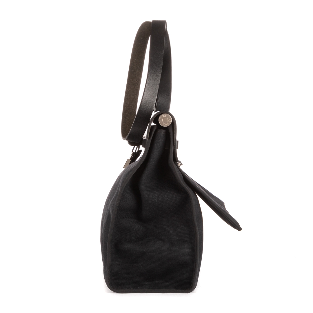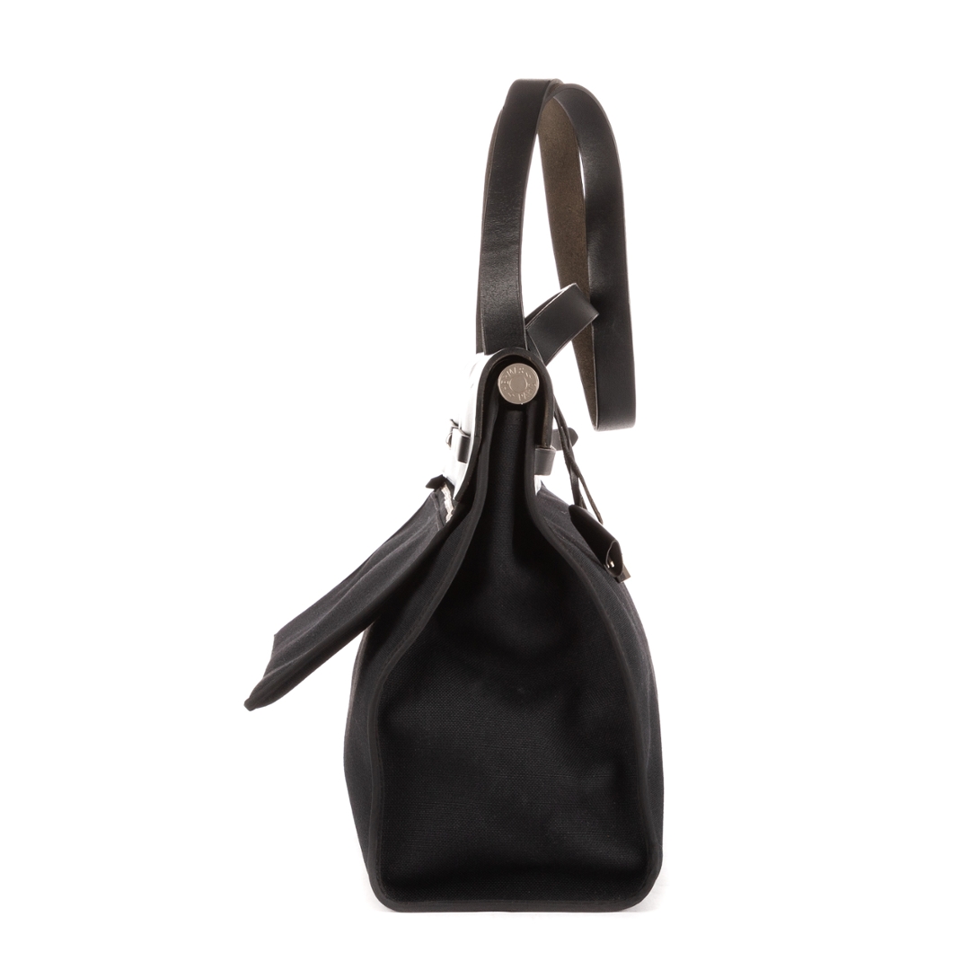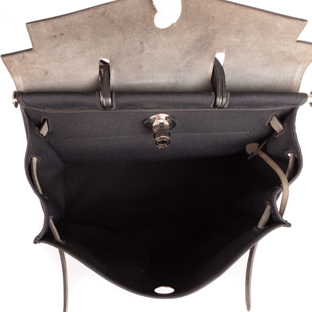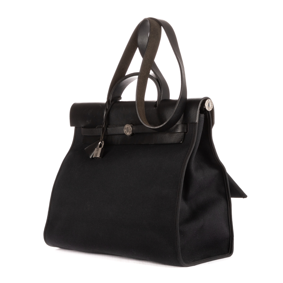A vintage Hermes black canvas Herbag Zip bag with a certificate of authenticity, Approx 30cm height, 39cm width.