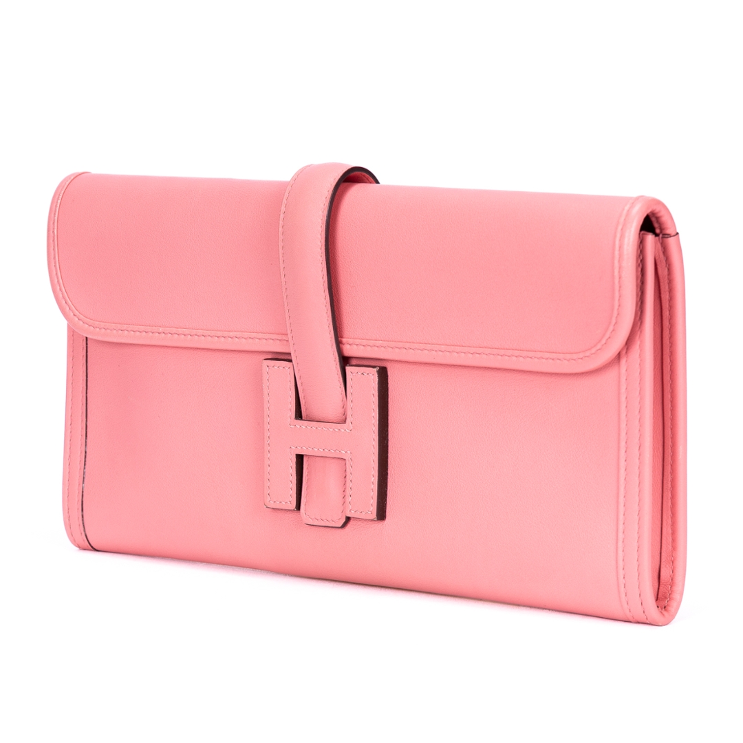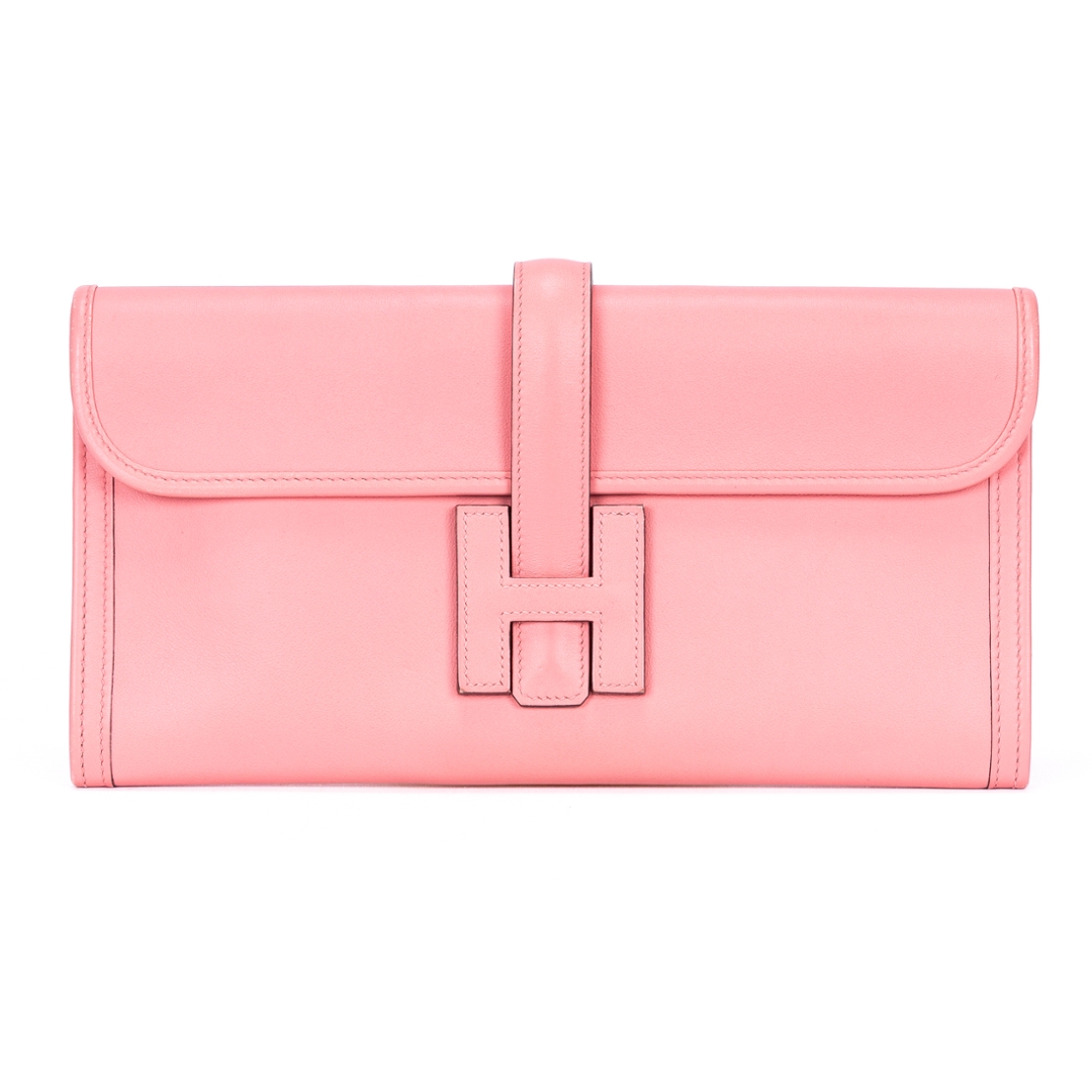 A vintage Hermes rose calf leather Jige Elan bag with a certificate of authenticity, Approx 16cm height, 29cm width.