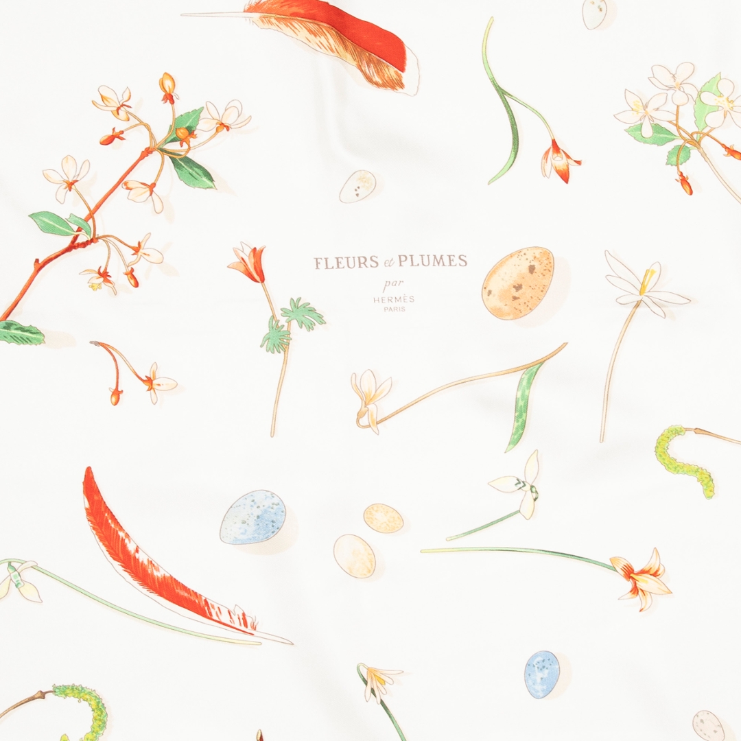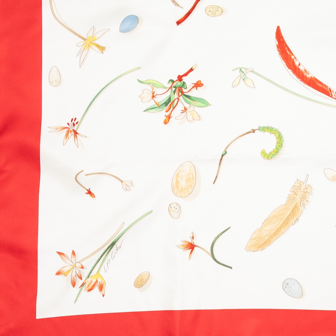 A vintage Hermes ivory/red silk Scarf with a certificate of authenticity. Approx 90cm height, 90cm width.