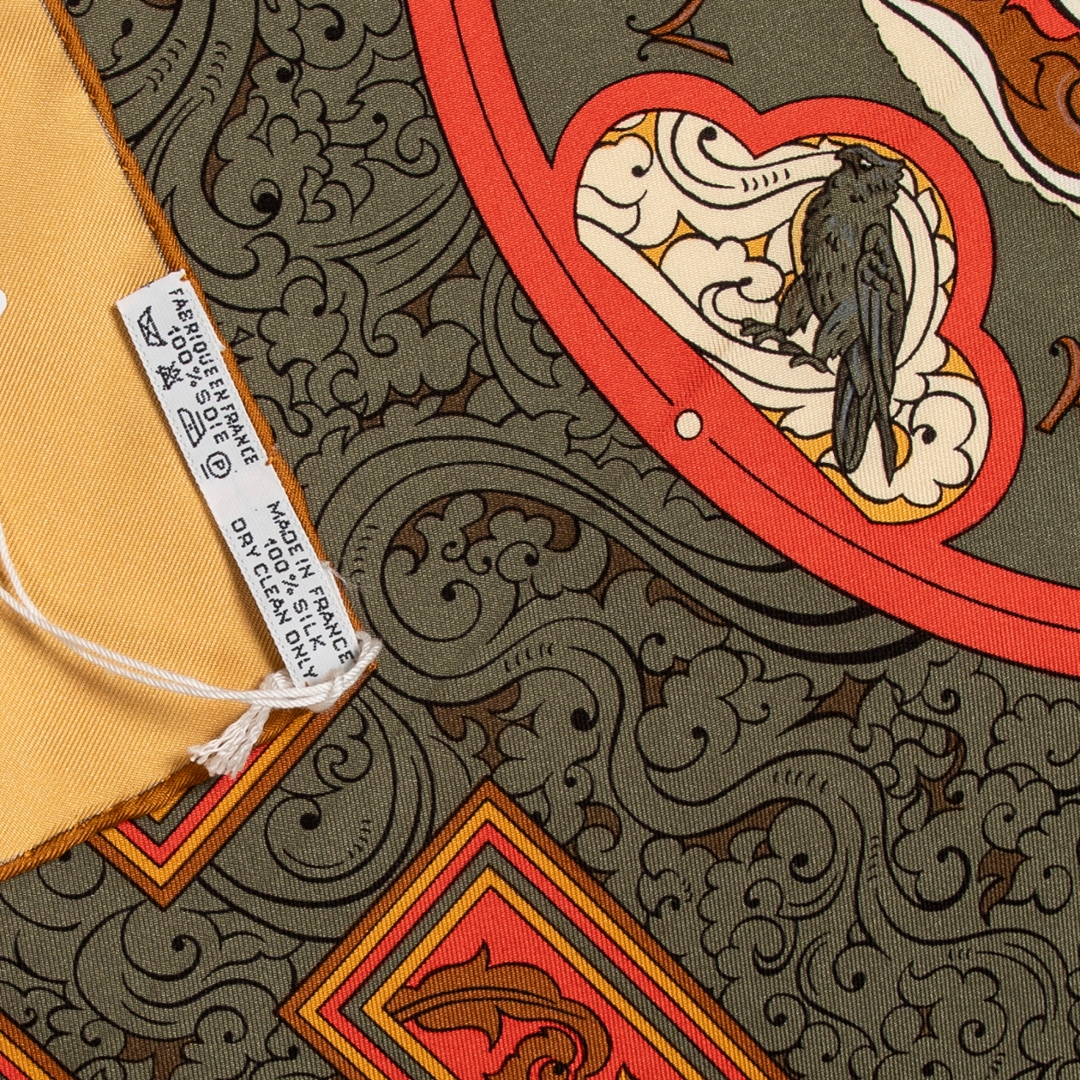 Measuring approximately 90cm by 90cm, this scarf is ideally sized for multiple styling options. It can be worn around the neck, draped across the shoulders, or tied to a handbag for a touch of refined luxury. The smooth silk fabric enhances the vibrancy of the design while offering a soft, lightweight feel that epitomises the quality Hermès is known for.