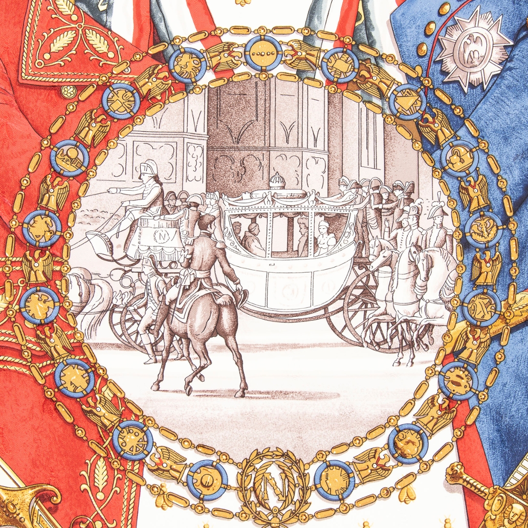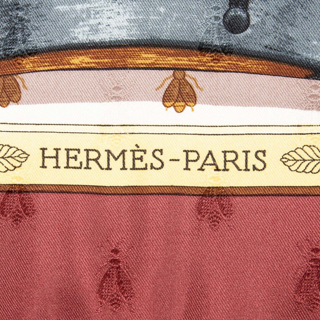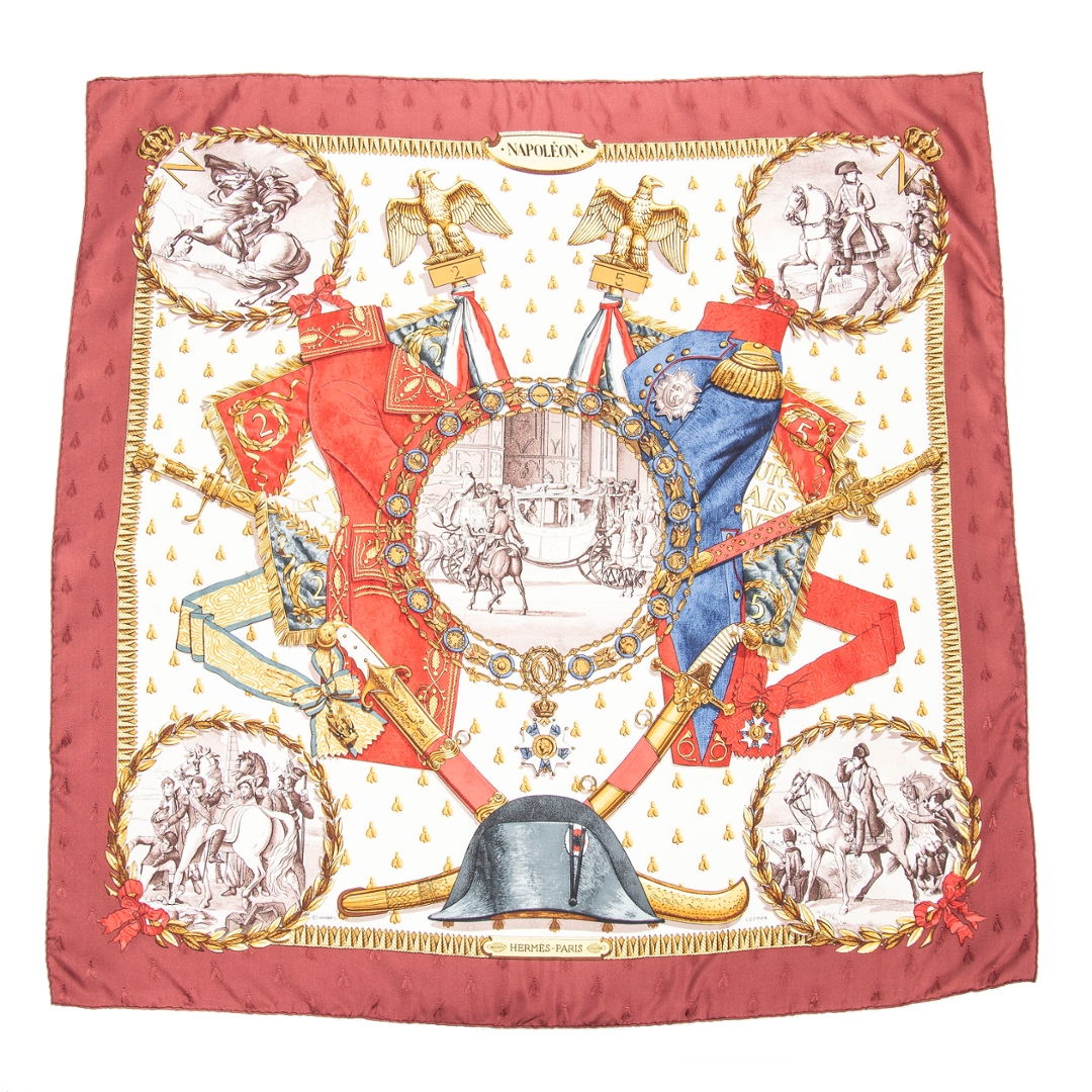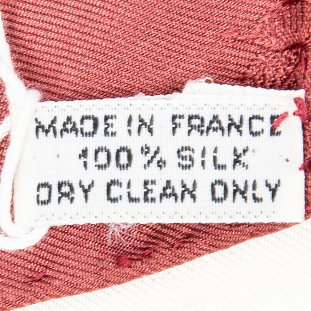 A vintage Hermes burgundy/ivory silk Scarf with a certificate of authenticity, Approximately 90cm height, 90cm width.