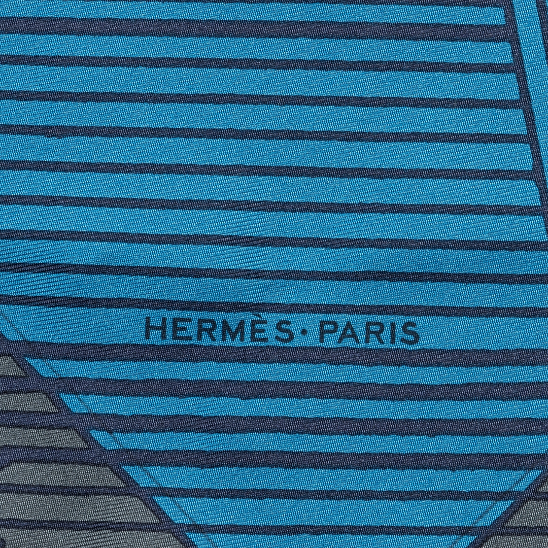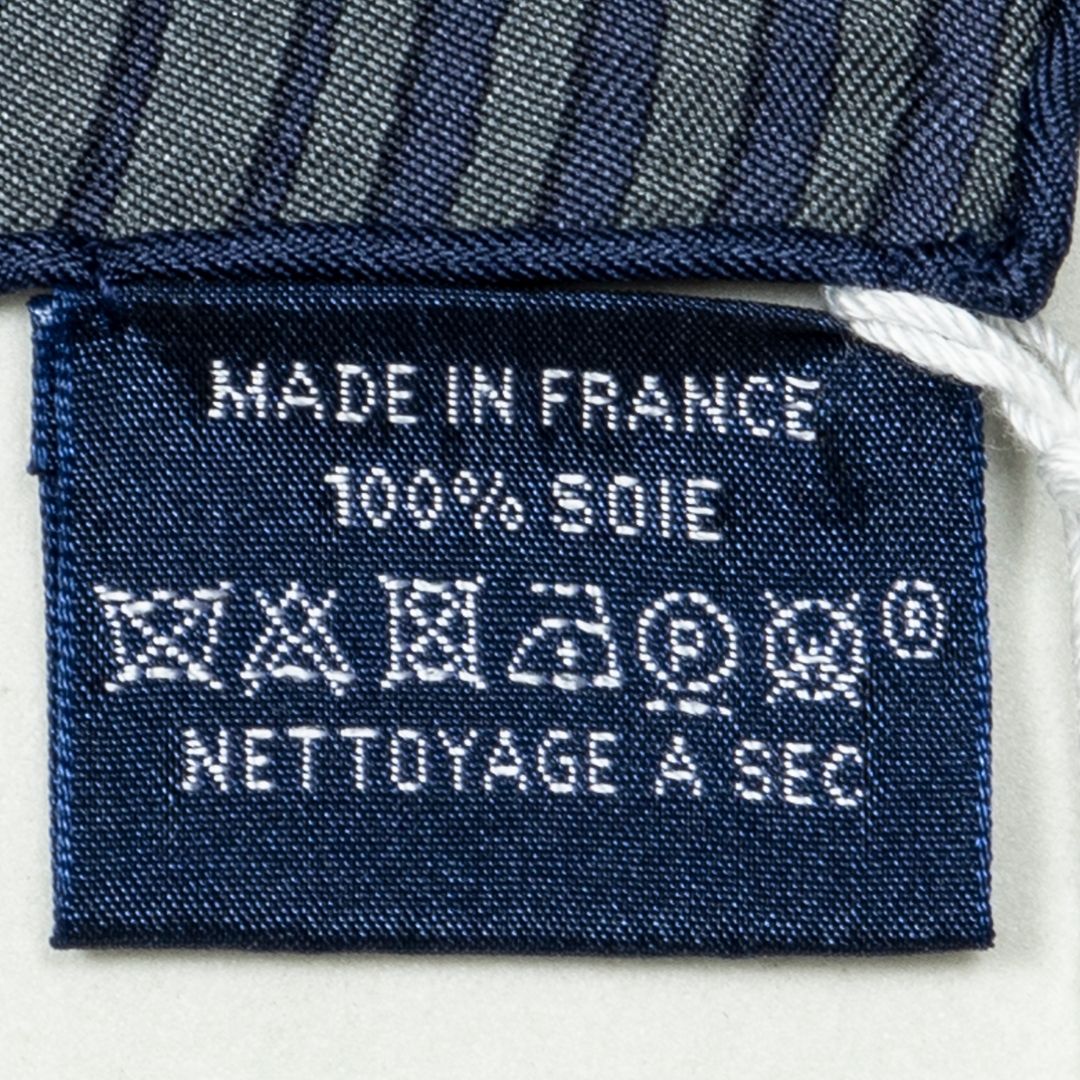 Accompanied by its certificate of authenticity, this Grade AA example is in excellent condition, showing only the lightest signs of careful use. A classic addition to any wardrobe, the Hermès blue and grey silk scarf combines artistry, heritage, and practicality, making it a highly desirable accessory for collectors and fashion enthusiasts alike.