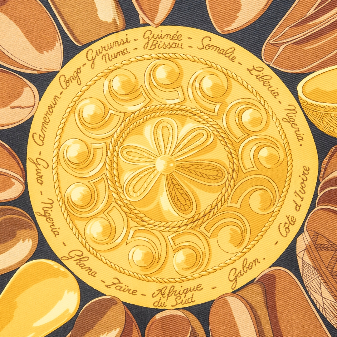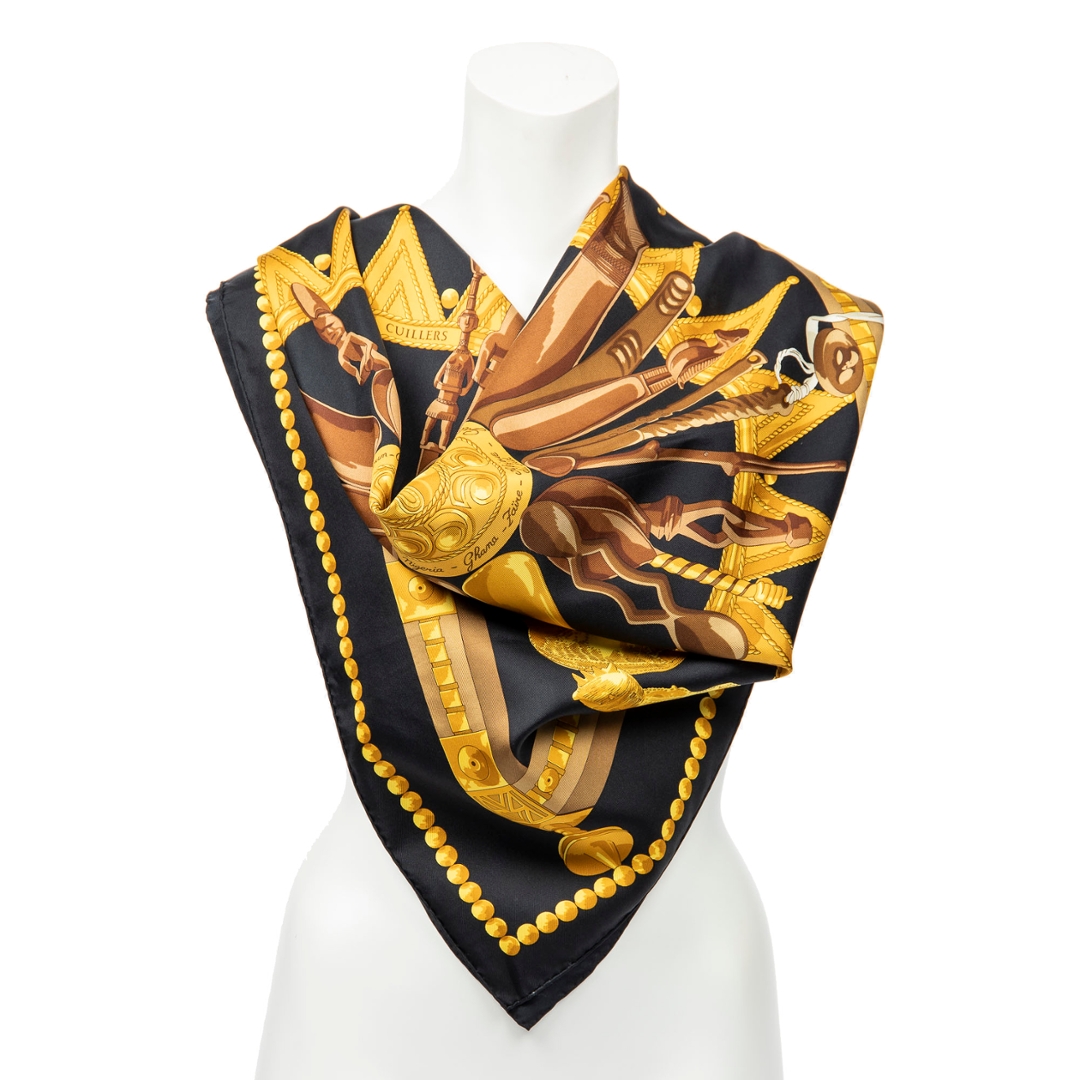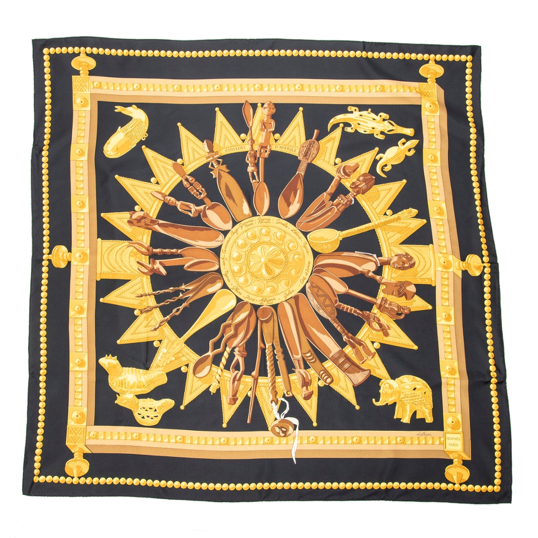A vintage Hermes Scarf with a certificate of authenticity. Approximately 90cm height, 90cm width.