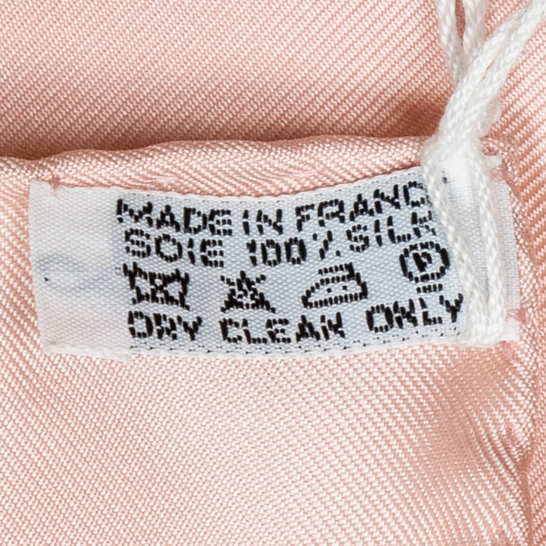A vintage Hermes pink/ivory silk Scarf with a certificate of authenticity. Approximately 90cm height, 90cm width.