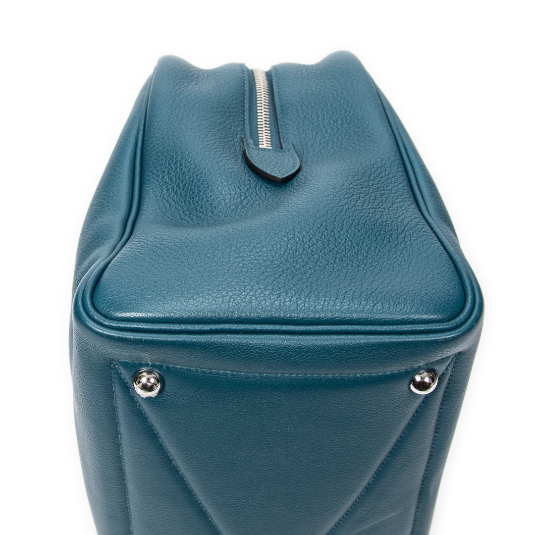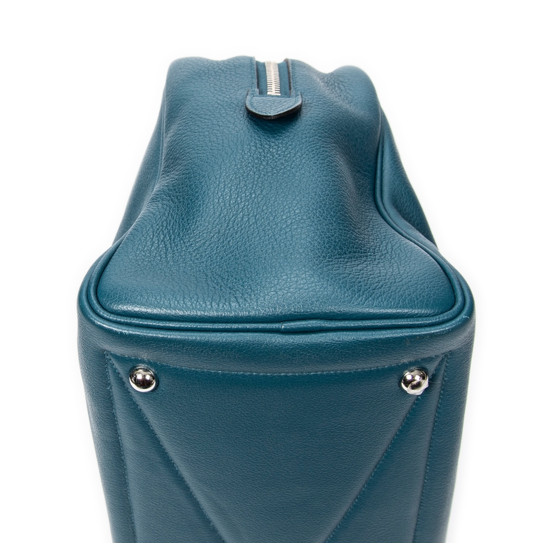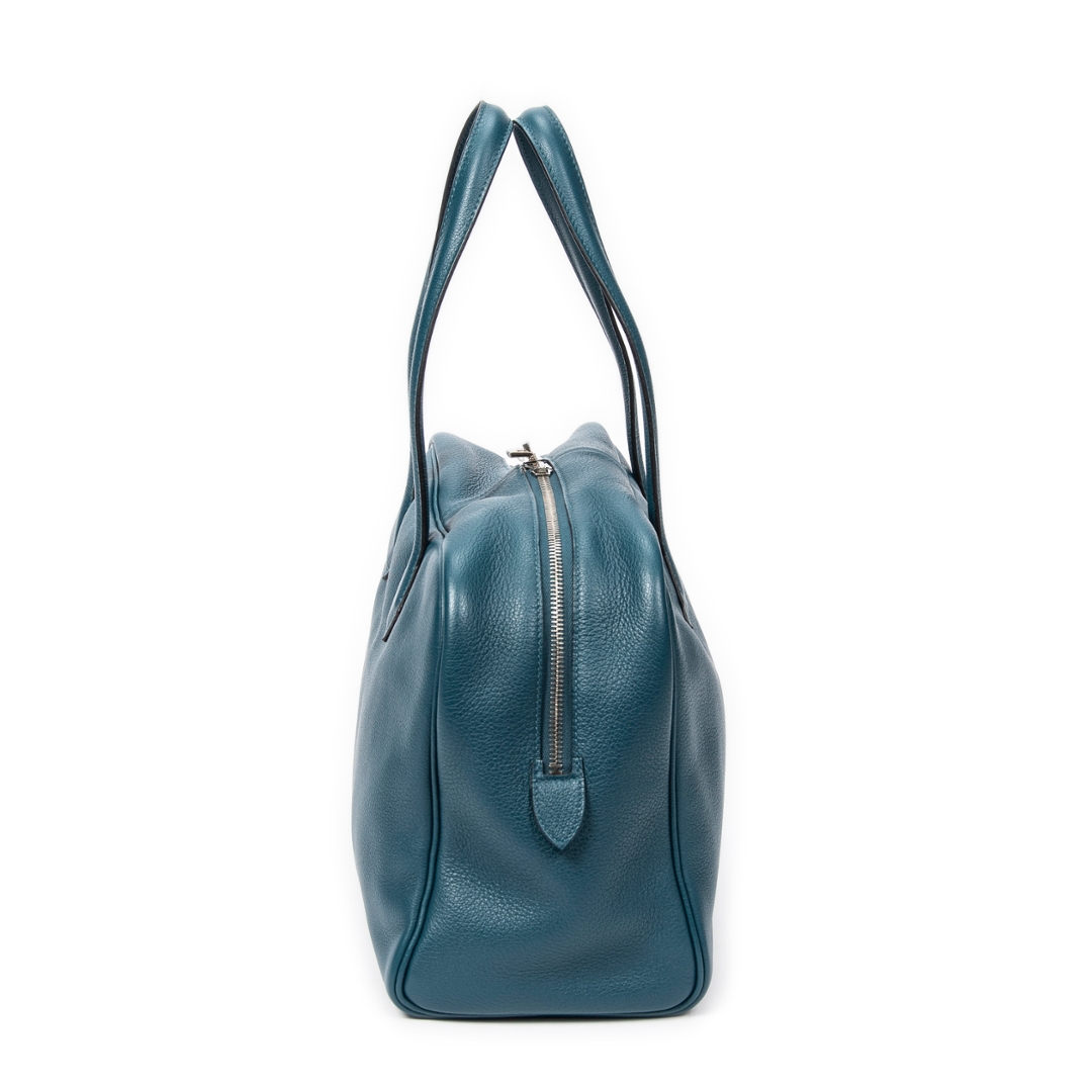 A vintage Hermès Victoria II bag crafted in rich blue calf leather, offering a refined balance of practicality and timeless elegance. The softly structured silhouette is enhanced by clean lines and dual top handles, creating a versatile design that transitions seamlessly from everyday use to more elevated occasions.