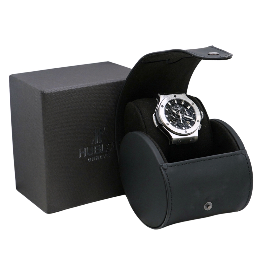 A Hublot Big Bang Aero Bang Watch, Black Rubber Strap with a Steel Case & Clasp on a Skeleton Dial