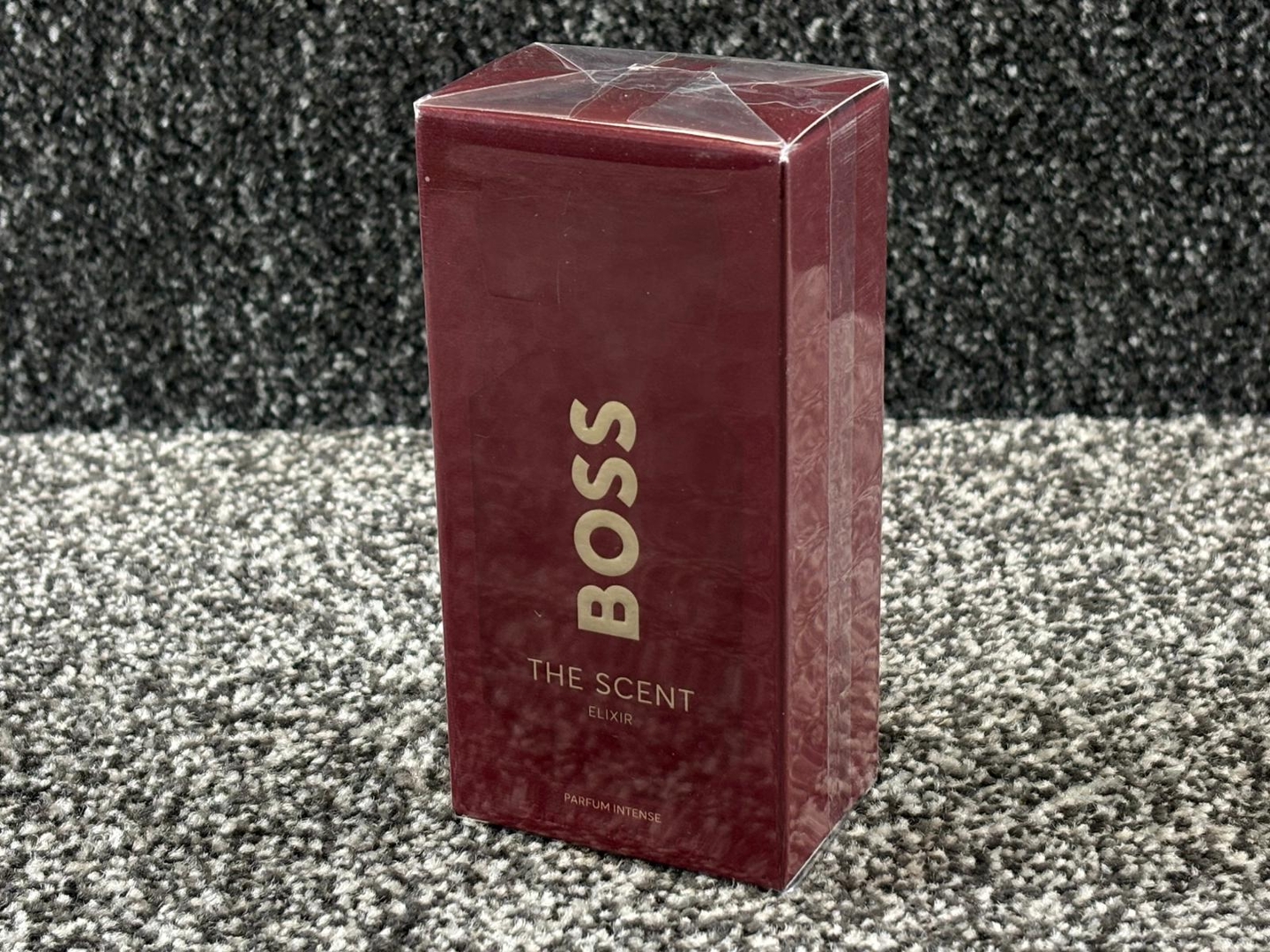 A 50ml bottle of Hugo Boss The Scent Elixir Parfum Intense, presented in its original presentation box and offering a deeper, more powerful interpretation of the iconic The Scent fragrance. This elixir edition elevates intensity and richness, reflecting Hugo Boss’s refined approach to modern masculinity.