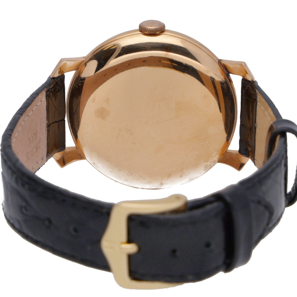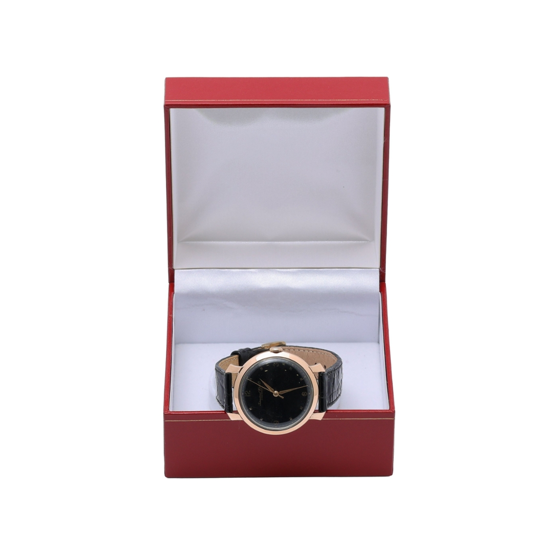 Inside sits an automatic movement typical of IWC’s engineering excellence of the period, delivering smooth, reliable performance more than six decades after its creation. The classic black leather strap with a matching rose gold pin buckle completes the look, giving the watch a versatile character that suits both formal and relaxed settings. At 36mm, it wears beautifully as a unisex piece, offering the presence and proportions sought after by collectors of vintage dress watches.