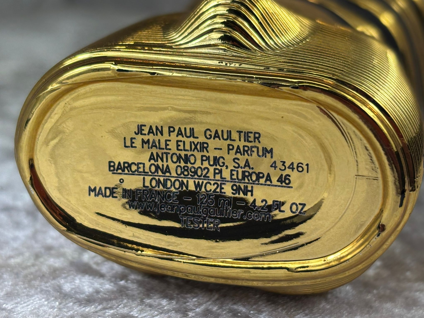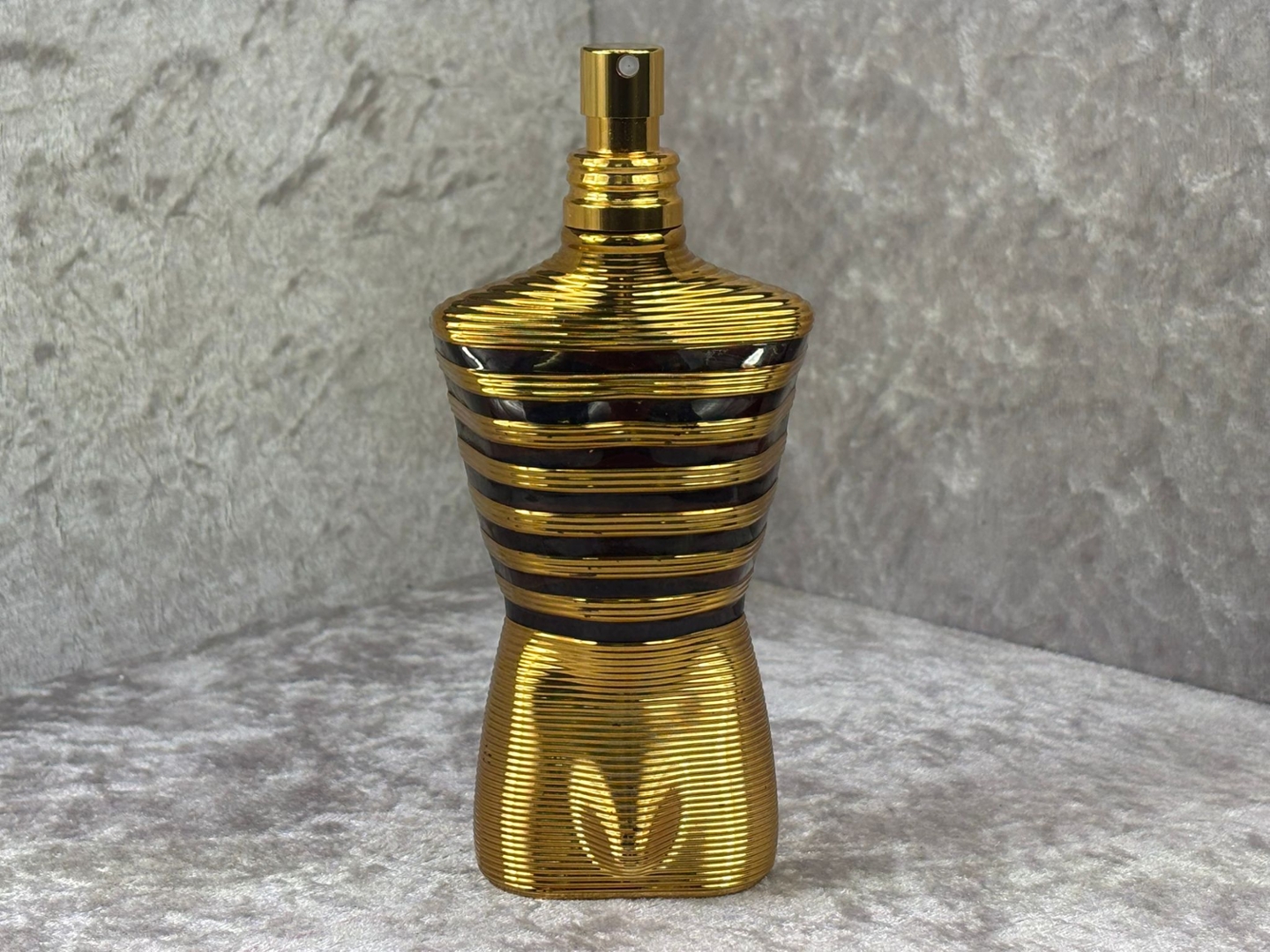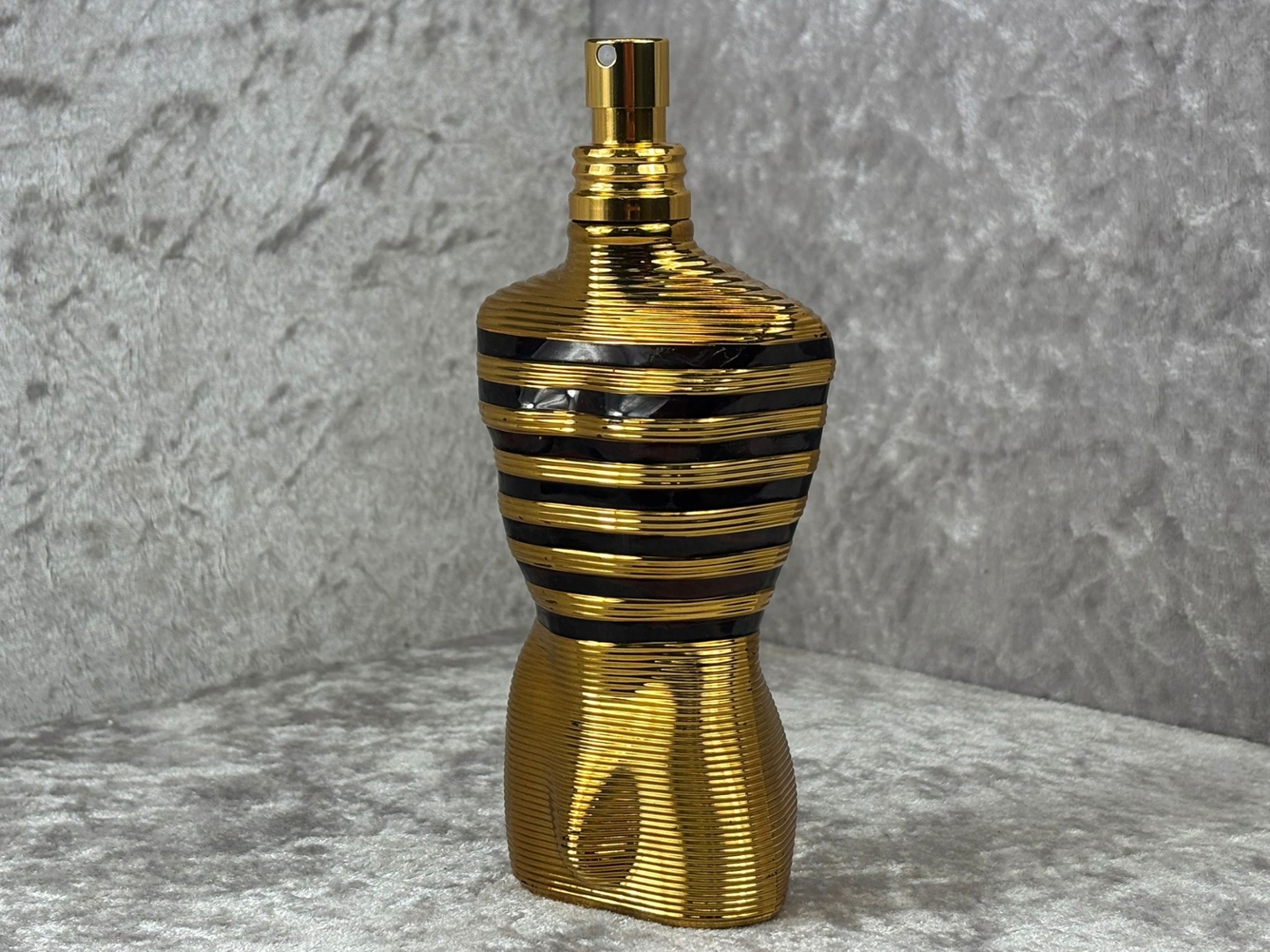 instantly recognisable male torso bottle finished in radiant gold,