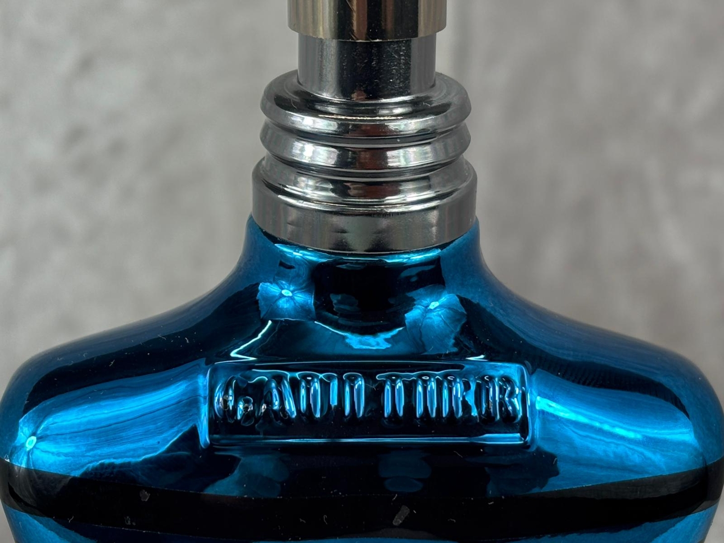 A bottle of Jean Paul Gaultier - Le Male in Blue Eau De Parfum.