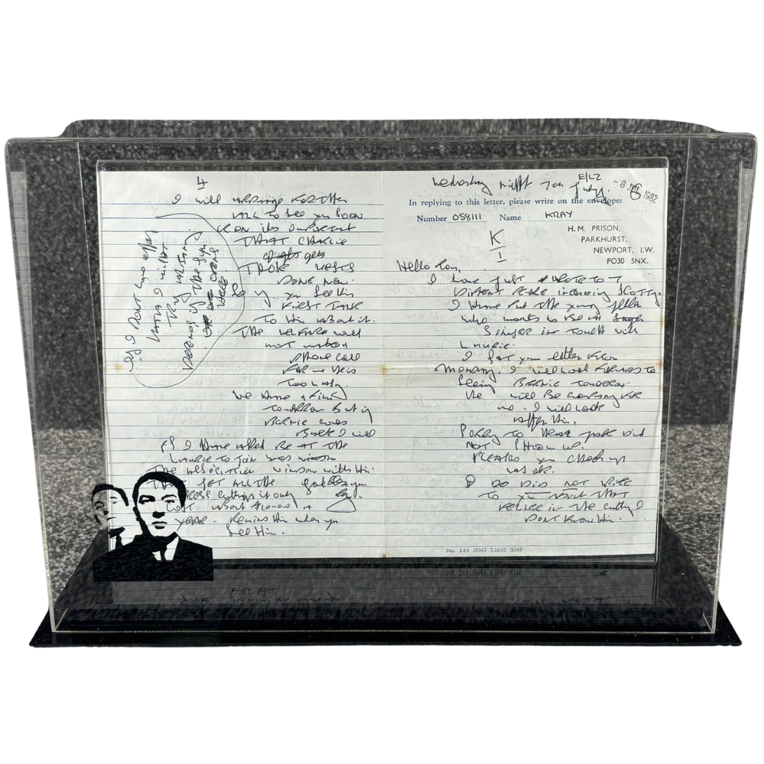 A signed and authenticated letter from Reggie Kray to his brother Ronnie from Prison in a presentation case. Approx 28cm height, 38cm width.