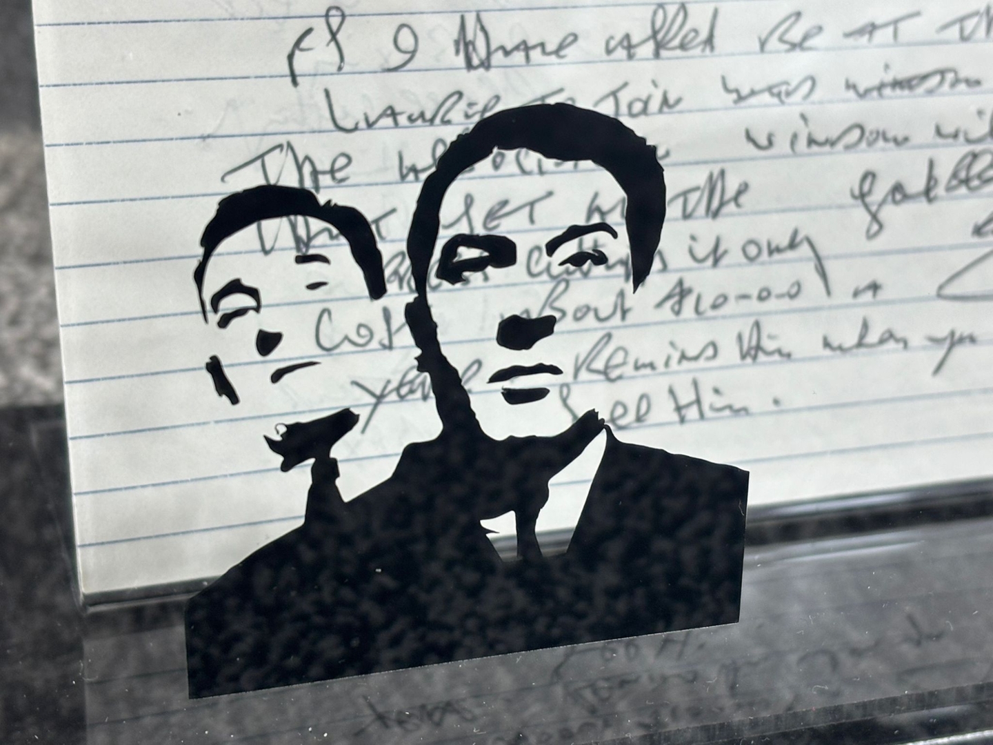Housed within a protective presentation case, this piece measures approximately 28cm in height and 38cm in width, making it ideal for display. A remarkable and deeply personal artefact, offering a tangible connection to one of Britain’s most notorious criminal partnerships.