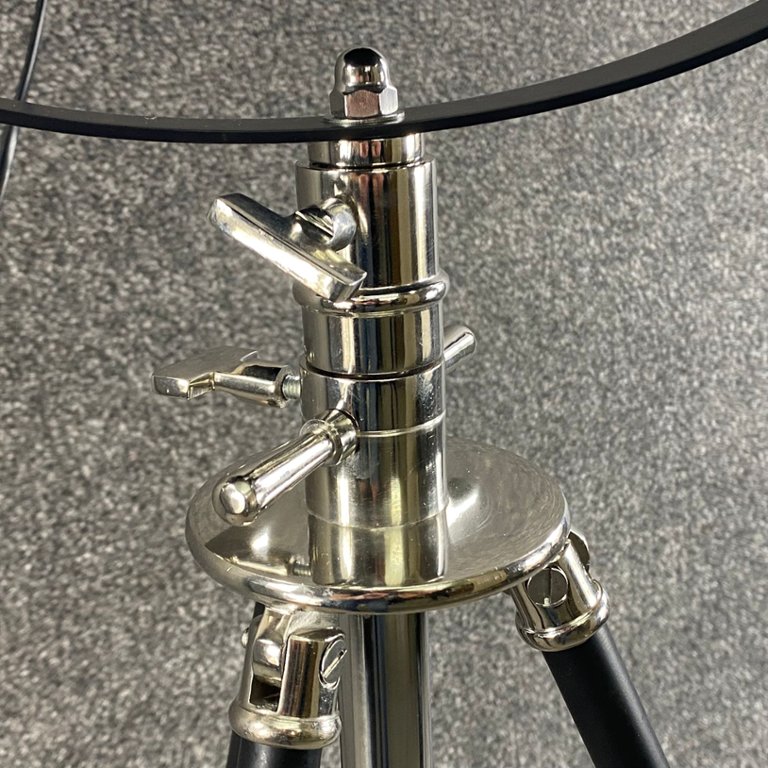 - > Large Black & Nickel Tripod Floor Cannon Lamp