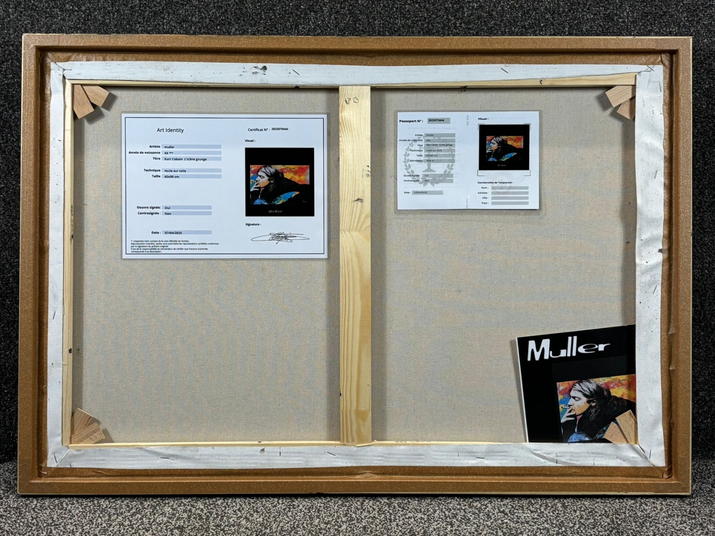An original oil painting by the artist Muller, titled Kurt Cobain – L’Icône Grunge, pays striking homage to one of music’s most influential figures. Measuring 60cm x 90cm, the piece captures the raw emotion and introspective aura of Kurt Cobain, frozen in a contemplative moment that reflects both his genius and his fragility.
