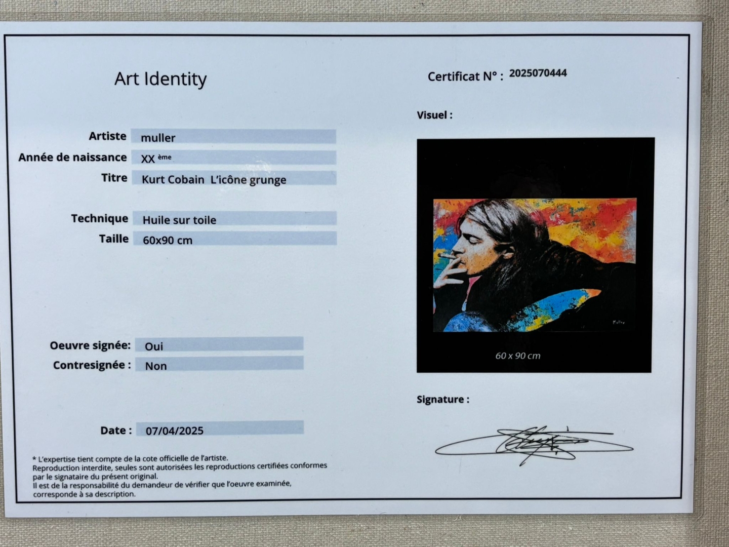 - > Large Oil Painting by the Artist Muller titled Kurt Cobain L'Icone Grunge.