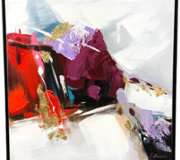A white framed original oil painting by the artist Tuhal titled L'art de L'autoderision.