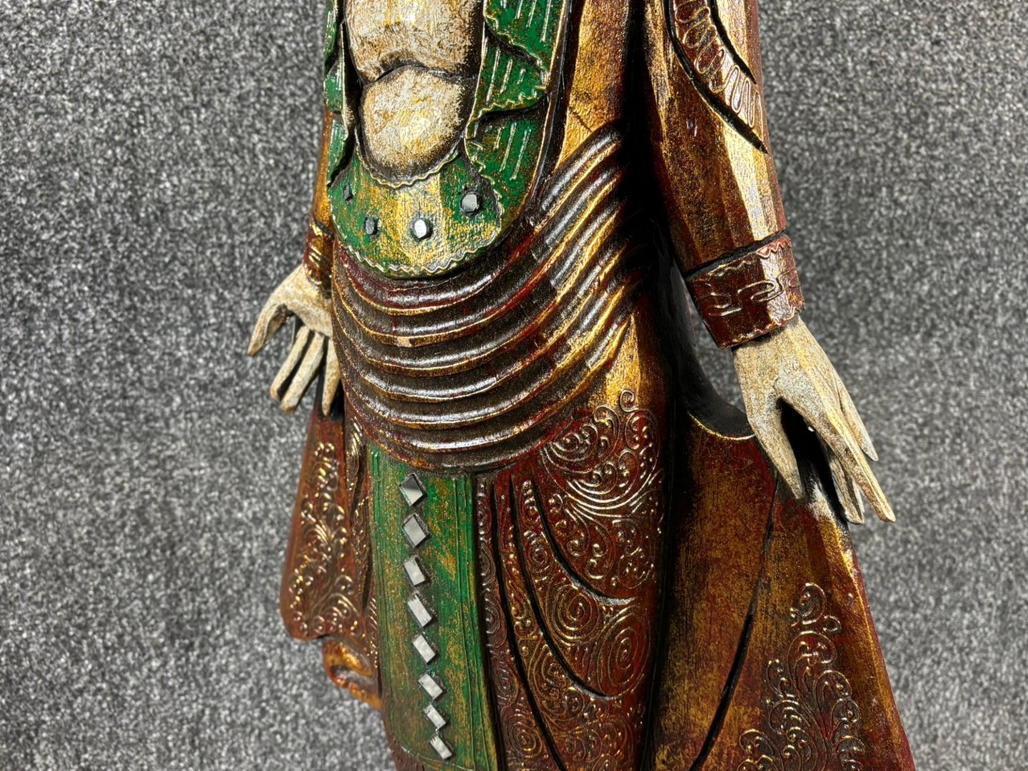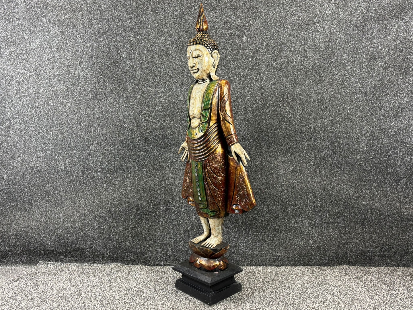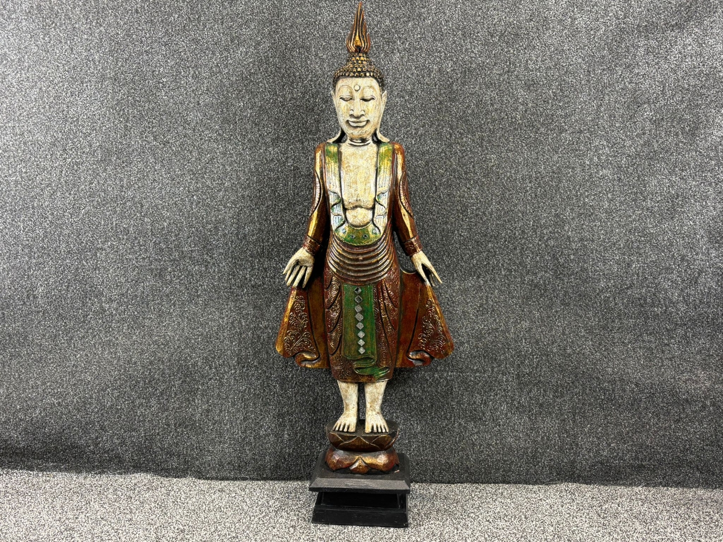 A large sculpture of a Standing Buddha. Approx 114cm height, 42cm width, 20cm depth.