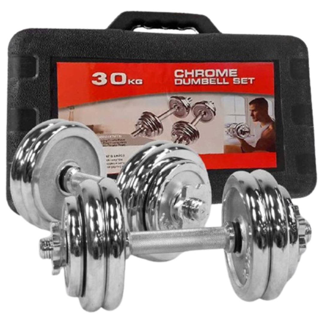A Limepeaks Chrome Dumbbell Set 30kg with Spin lock-Adjustable Dumbbell Weights.