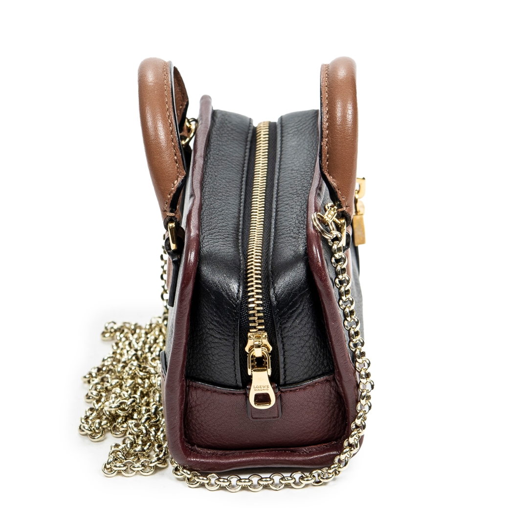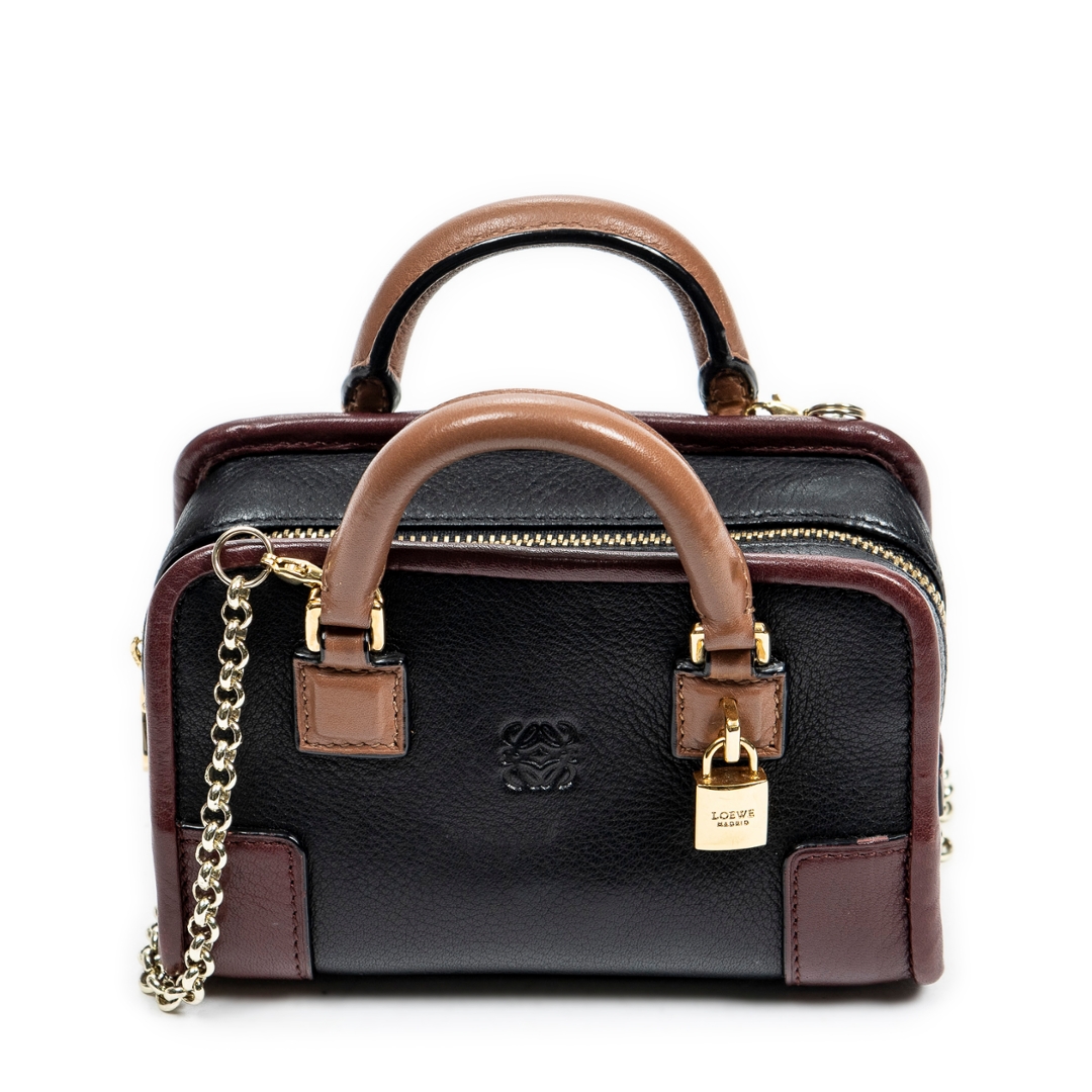 A vintage Loewe black/brown calf leather Micro Mini Amazona bag with a certificate of authenticity, Approximately 9cm height, 13cm width.