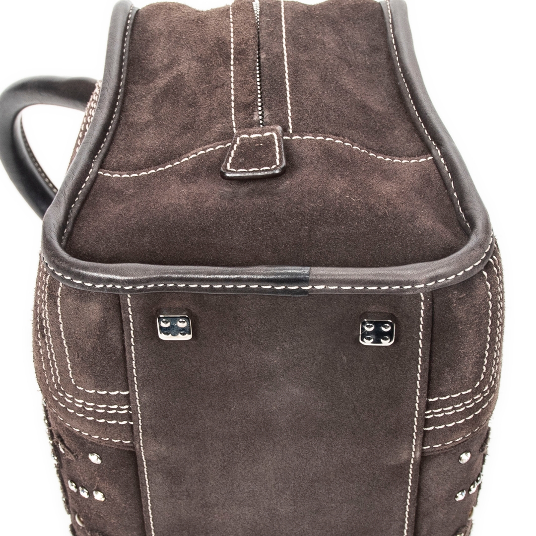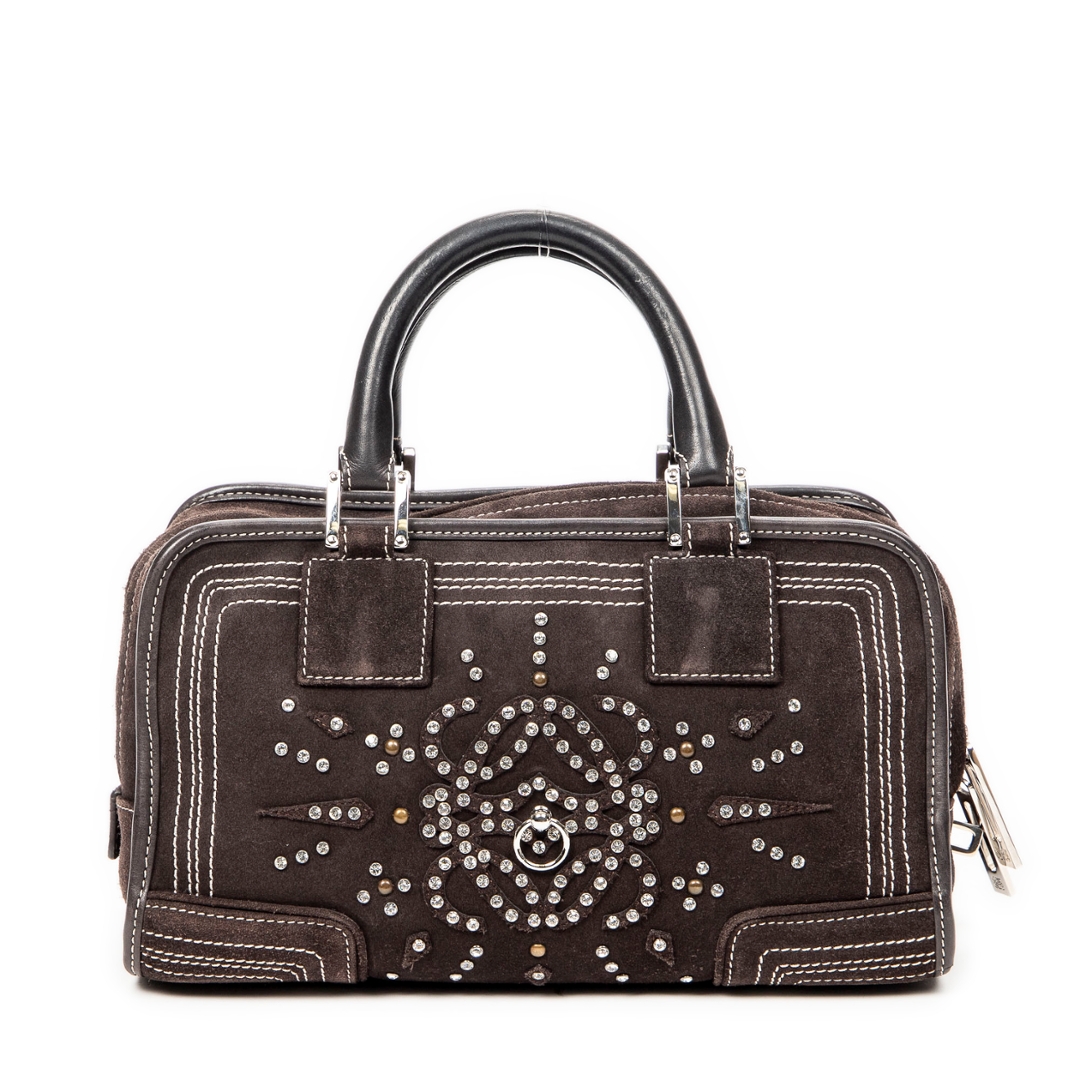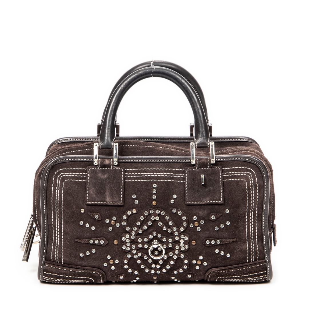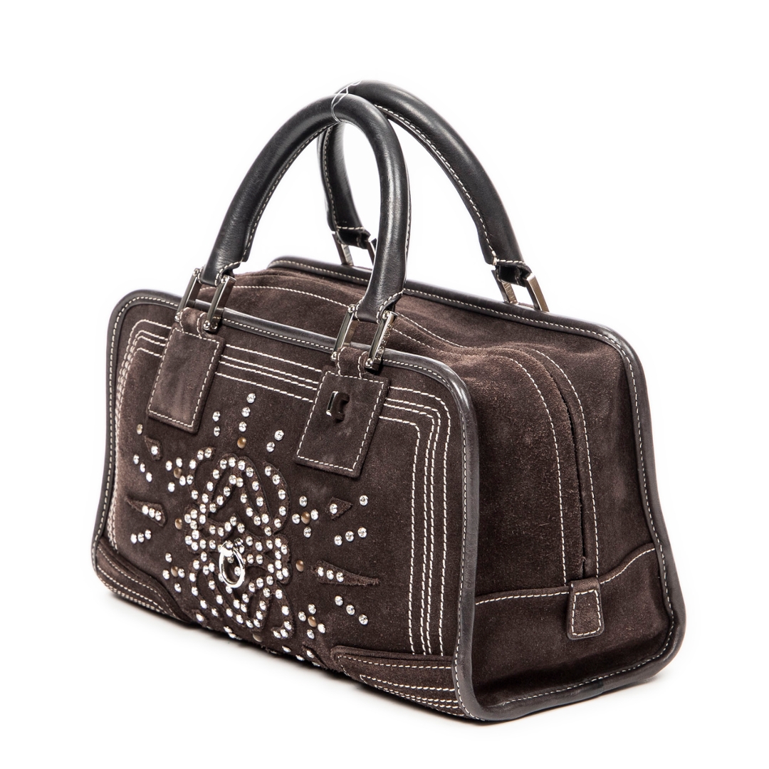 A vintage Loewe dark brown calf leather Rhinestone Amazona bag with a certificate of authenticity, Approximately 16cm height, 29cm width.