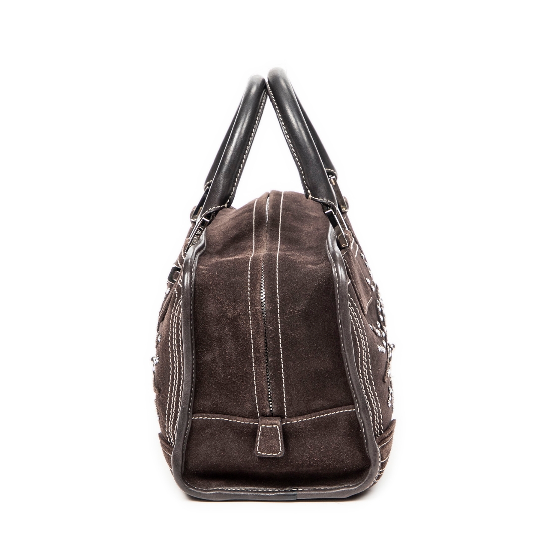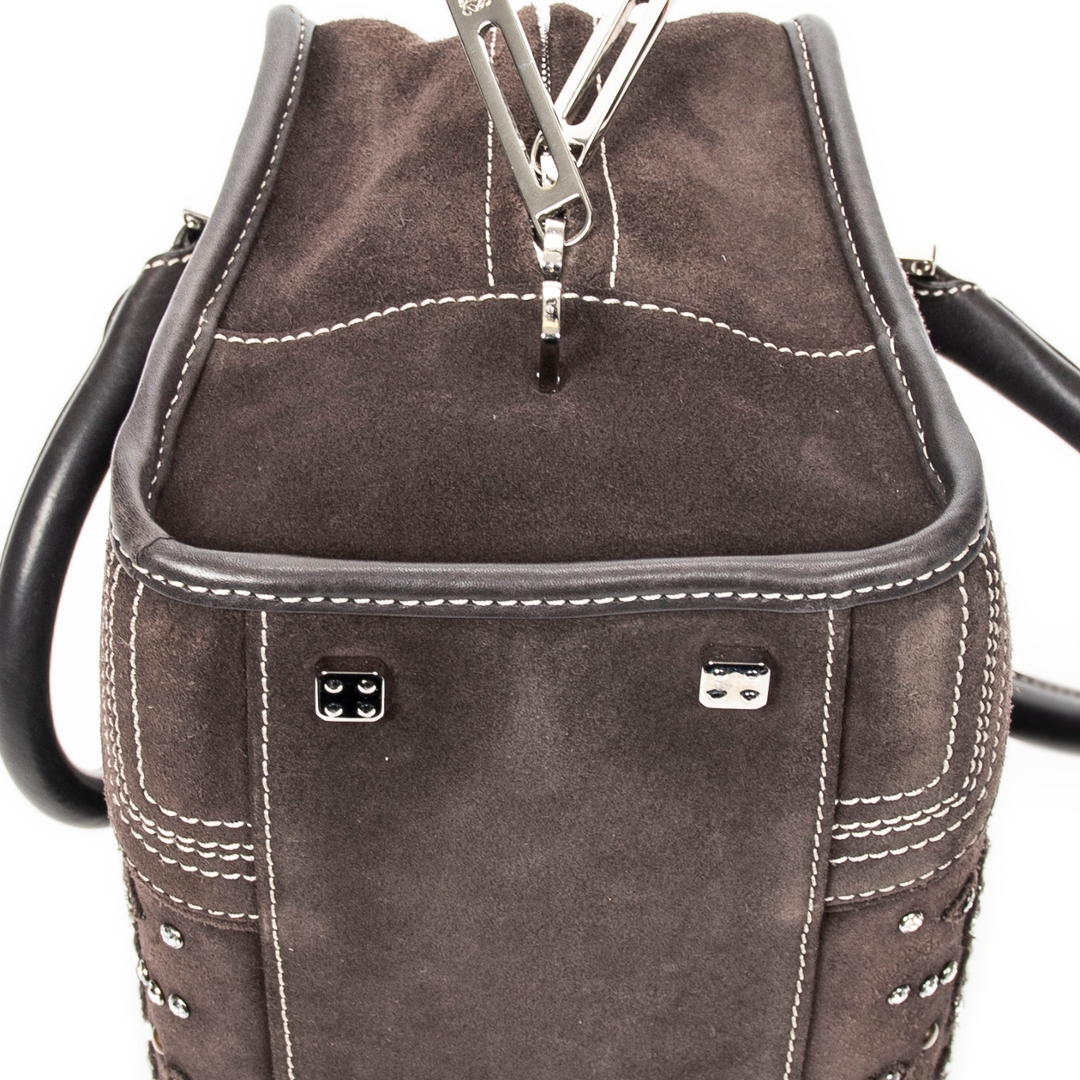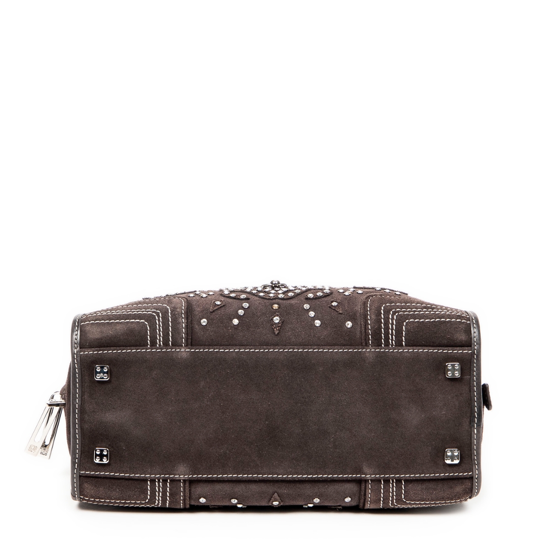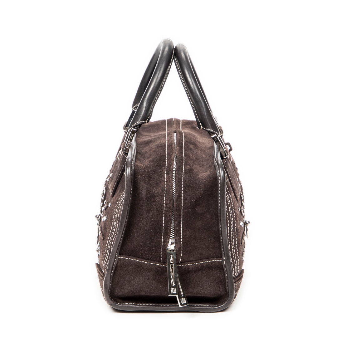 A vintage Loewe dark brown calf leather Rhinestone Amazona bag with a certificate of authenticity, Approximately 16cm height, 29cm width.