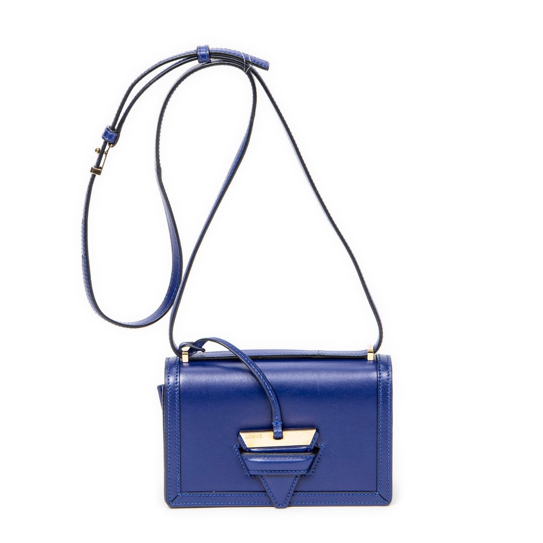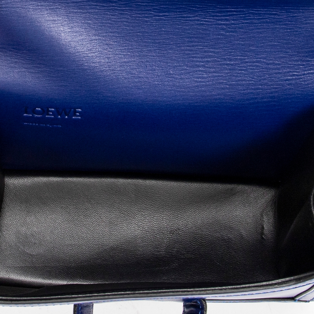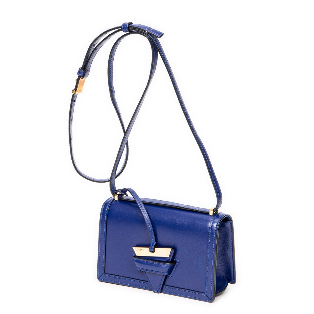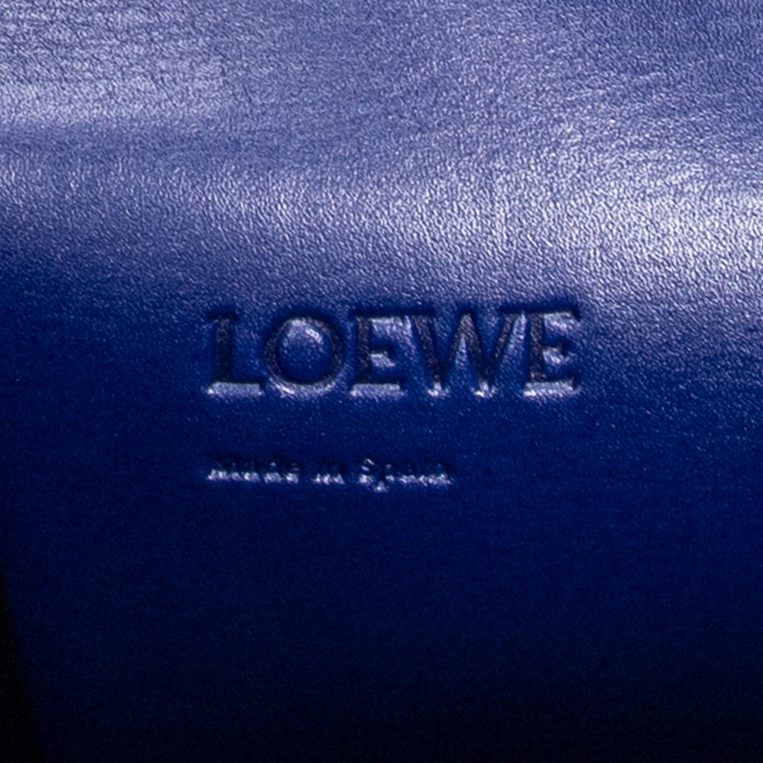 A vintage Loewe blue calf leather Small Barcelona bag with a certificate of authenticity, Approximately 11cm height, 18cm width.
