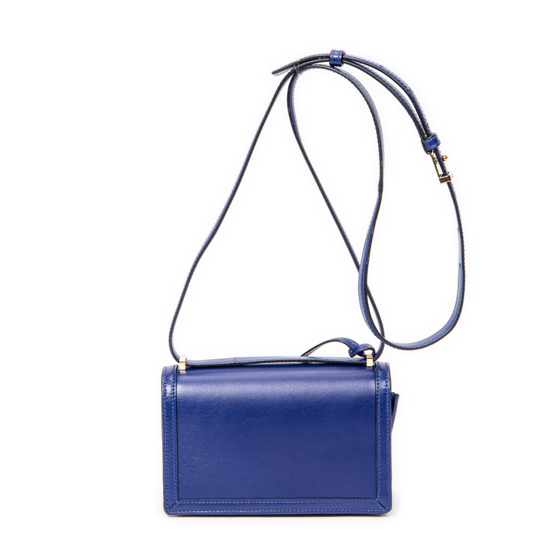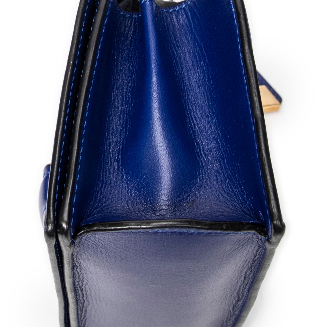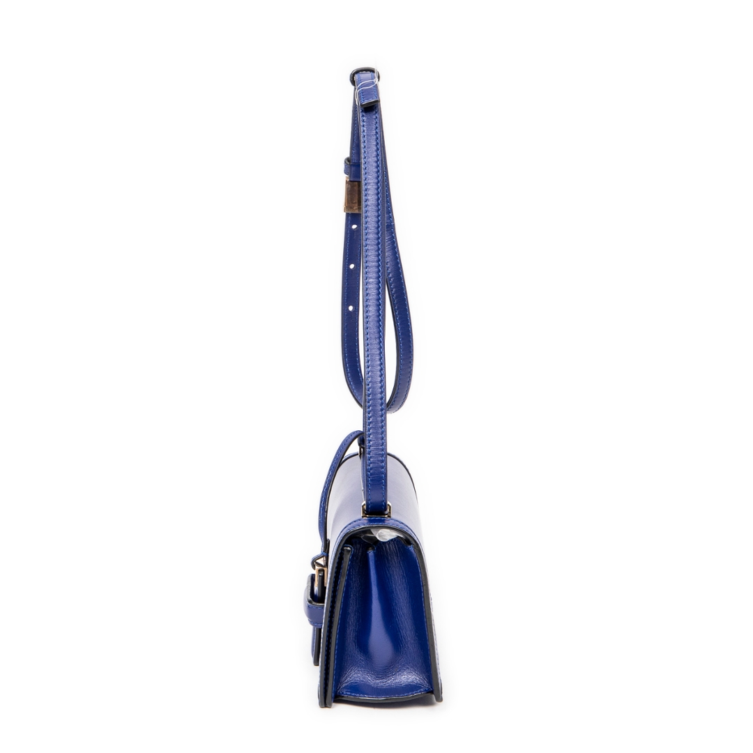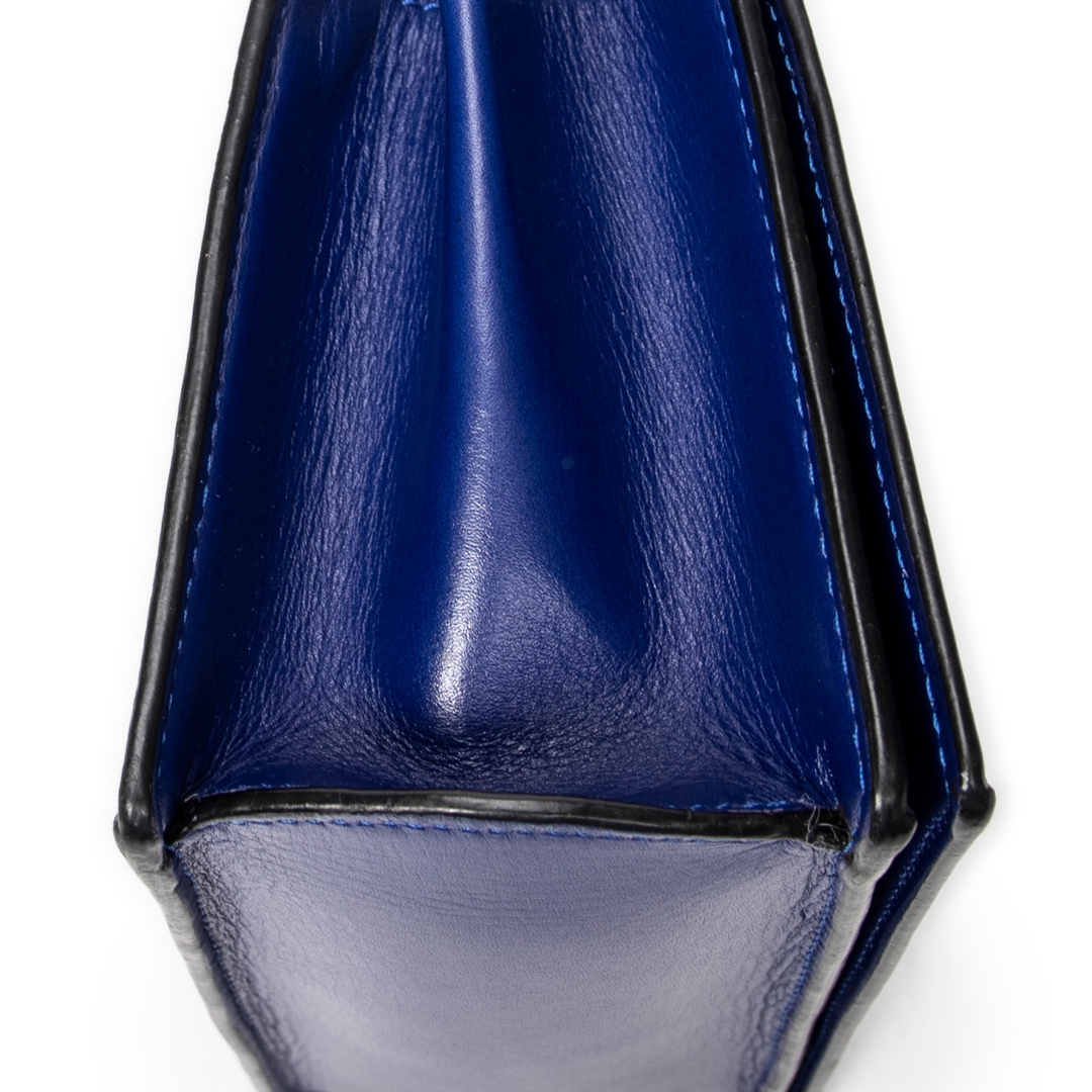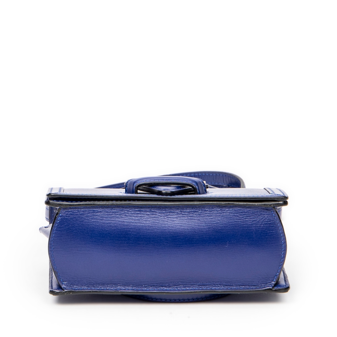 A vintage Loewe blue calf leather Small Barcelona bag with a certificate of authenticity, Approximately 11cm height, 18cm width.