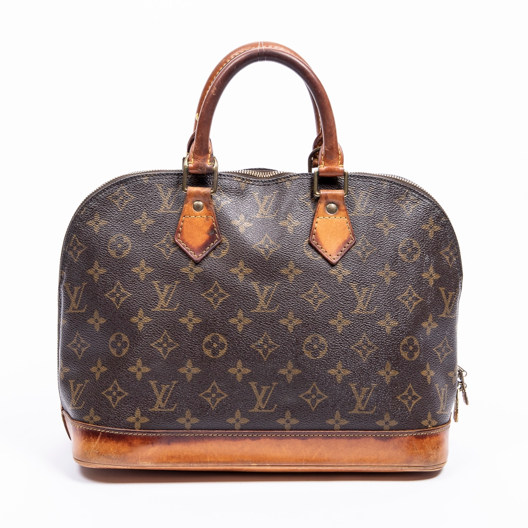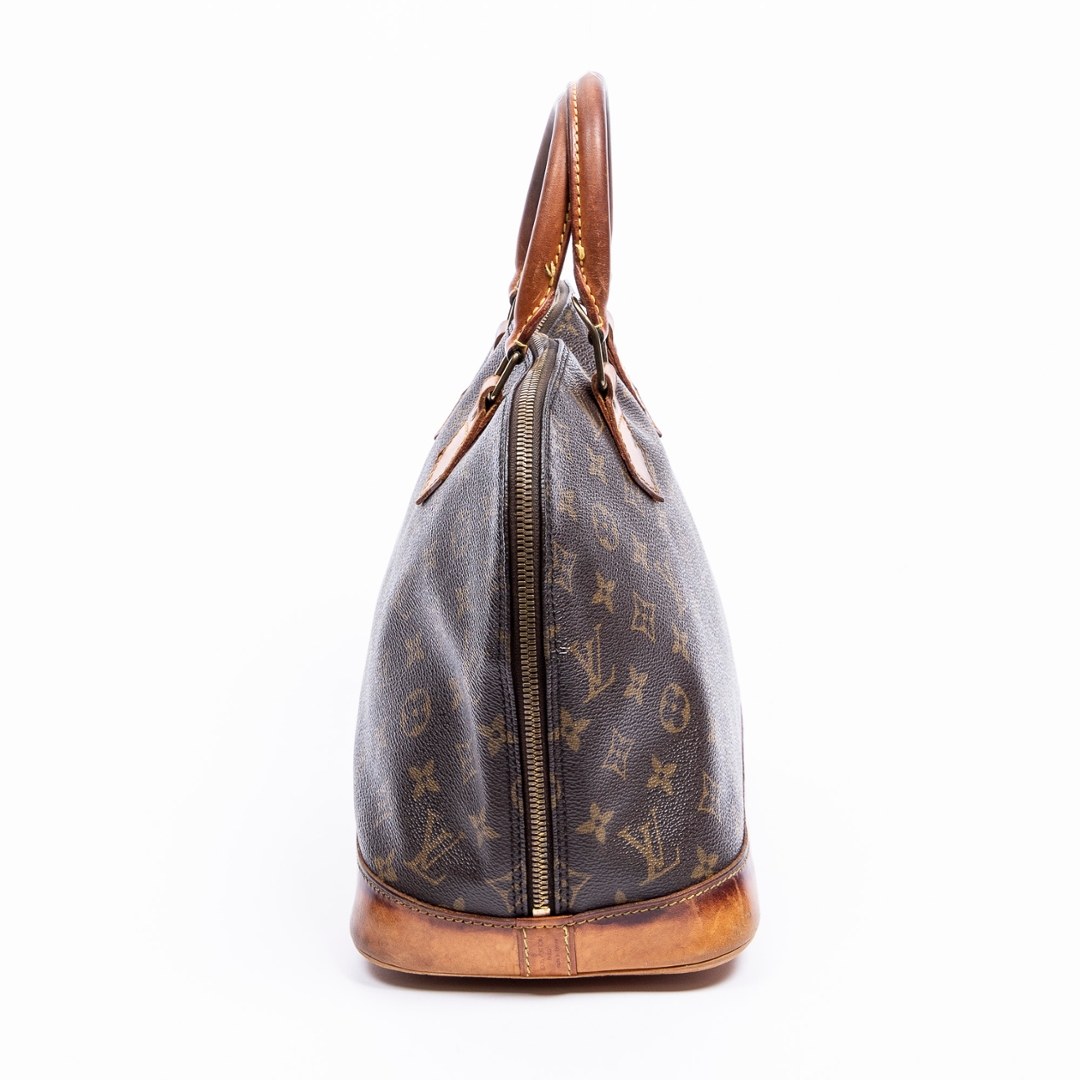 A vintage Louis Vuitton monogram coated canvas Alma bag with a certificate of authenticity. Approximately 23cm height, 29cm width.
