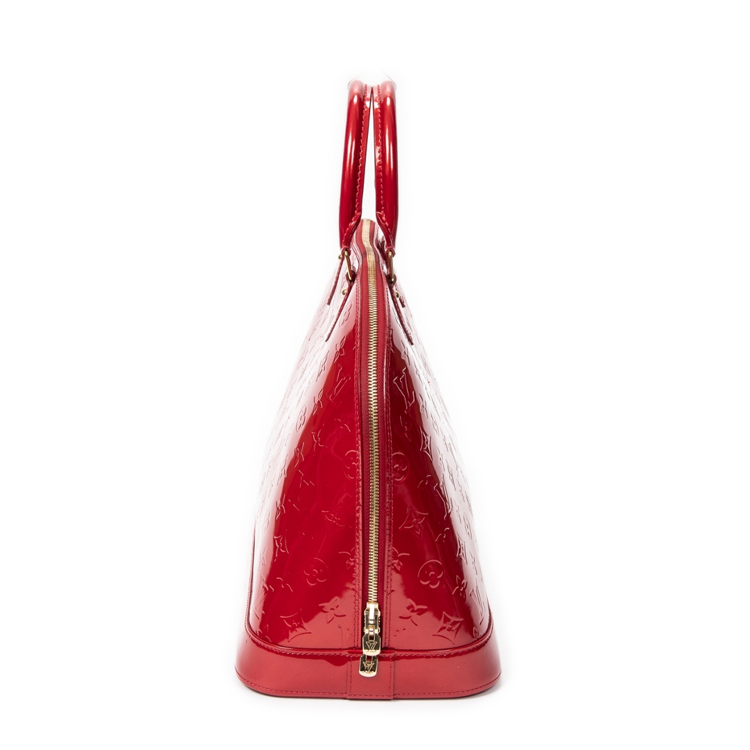 Complete with a certificate of authenticity, this red Alma represents a timeless Louis Vuitton piece with strong visual impact and enduring desirability among collectors and enthusiasts.