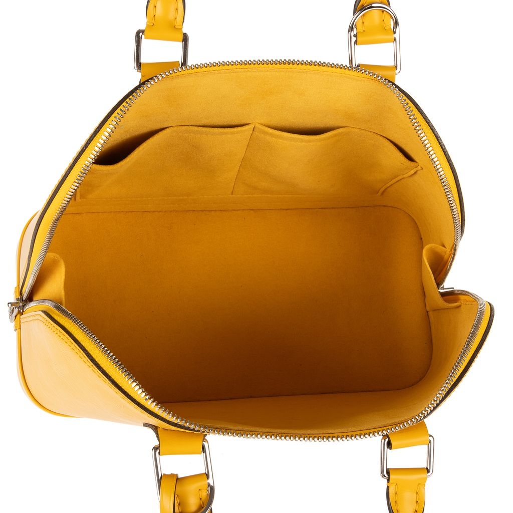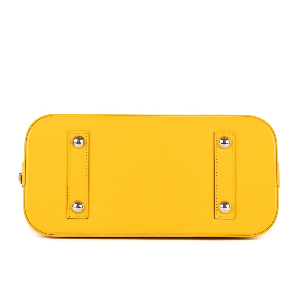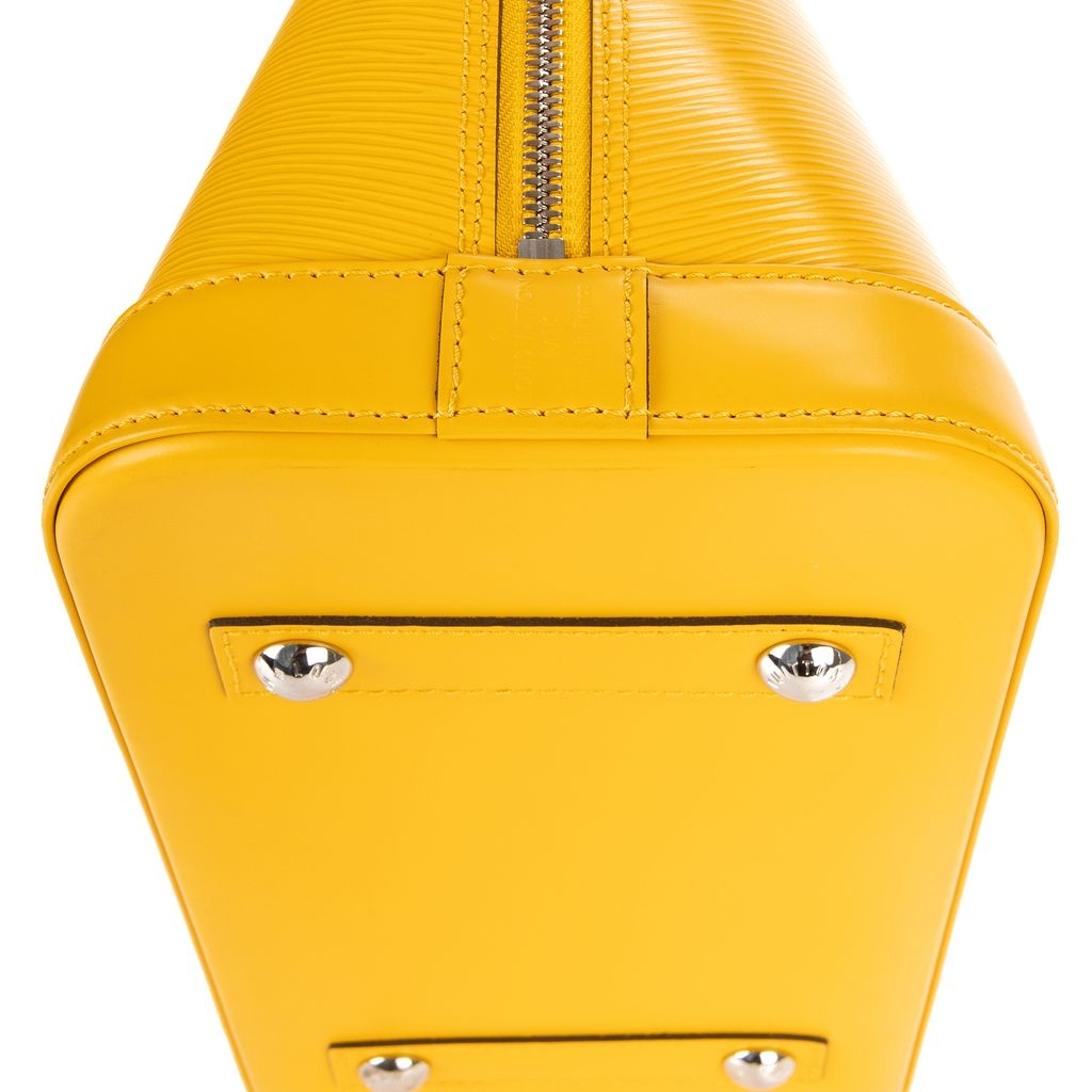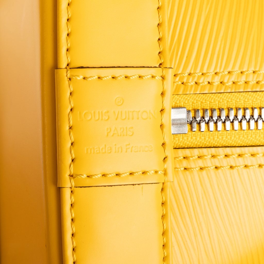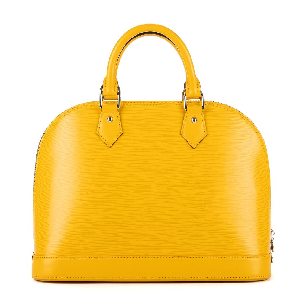 A vintage Louis Vuitton yellow calf leather Alma bag is an exquisite accessory, instantly recognisable for its iconic and structured silhouette. This beautiful piece, which includes a certificate of authenticity, is crafted from the brand's distinctive Epi leather, celebrated for its unique ribbed texture and remarkable durability. The vibrant yellow hue adds a cheerful and modern pop of colour, transforming this classic handbag into a true statement piece.