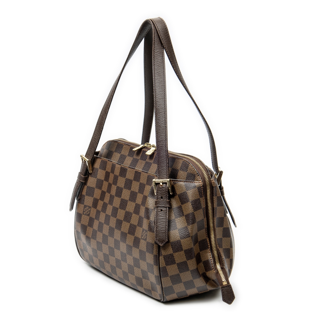 A vintage Louis Vuitton Belem bag crafted in the house’s signature brown Damier coated canvas, offering a structured yet feminine silhouette with everyday versatility. The softly curved shape is complemented by dark leather trim, dual shoulder straps with adjustable buckle detailing, and gold-tone hardware, while the secure double zip closure ensures practicality. Measuring approximately 24cm in height and 34cm in width, it provides a well-balanced size ideal for daily essentials.