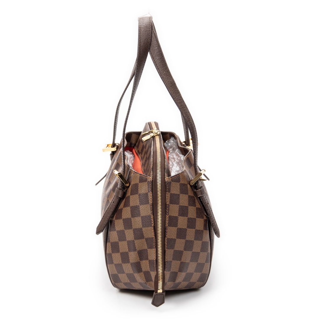 Measuring approximately 24cm in height and 34cm in width, this piece offers a well-balanced interior suitable for daily essentials without compromising its elegant profile. The thoughtful design includes side strap detailing, adding subtle structure and a distinctive Louis Vuitton touch to this timeless model.