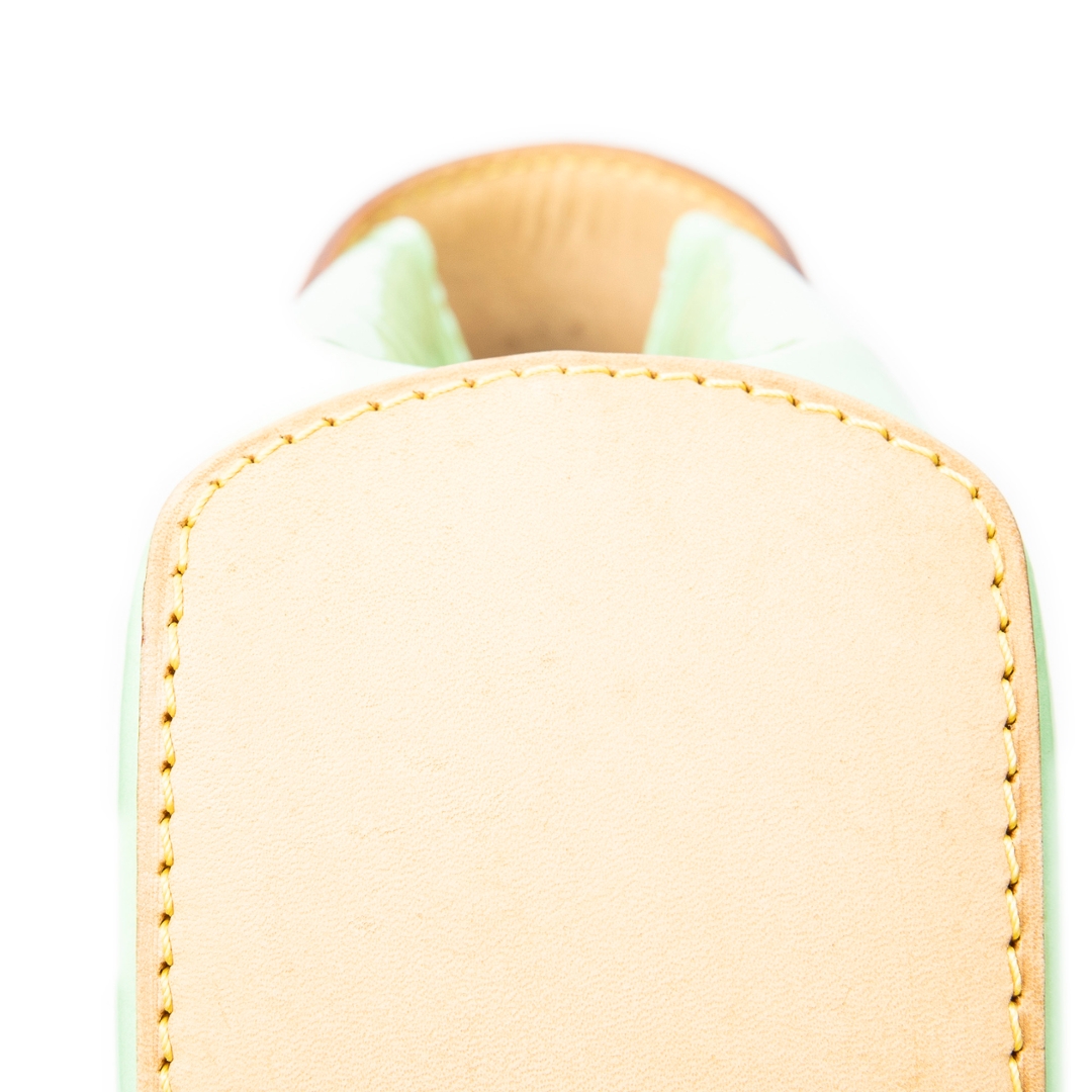A vintage Louis Vuitton Biscayne Bay bag crafted in striking mint green calf leather, featuring the embossed monogram finish that delivers a refined yet contemporary aesthetic. The softly structured silhouette is complemented by natural leather trim and long shoulder straps, creating a distinctive and elegant profile that stands out within the Louis Vuitton collection.