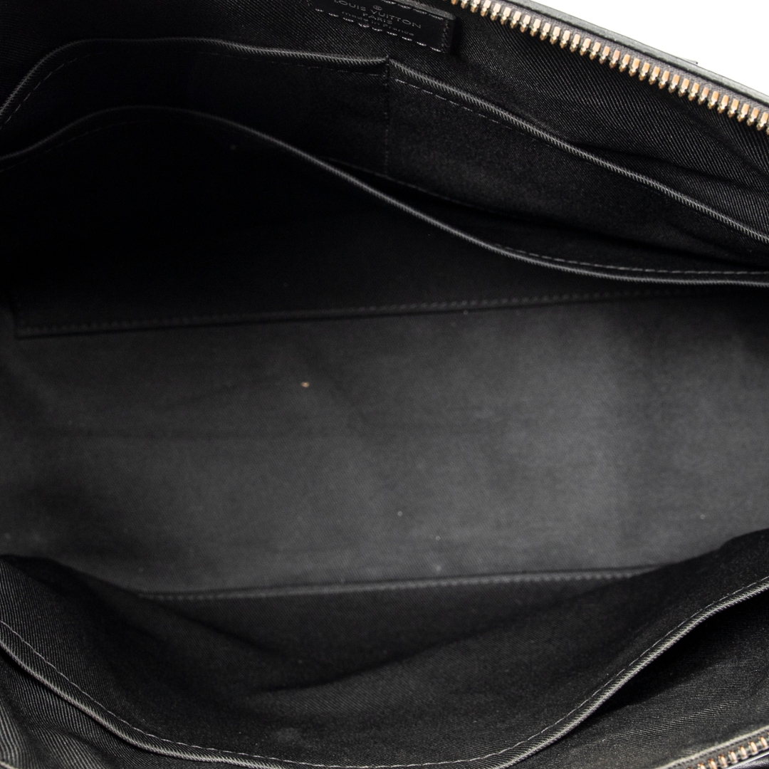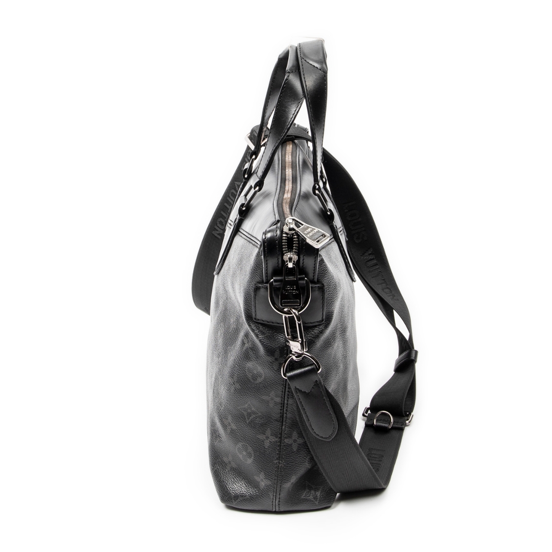 A vintage Louis Vuitton Briefcase Explorer bag crafted in black and grey coated canvas, featuring the subtle Monogram Eclipse pattern for a modern and understated luxury aesthetic. The structured design is complemented by smooth black leather trim, silver-tone hardware, and reinforced top handles, delivering both durability and a refined professional look.