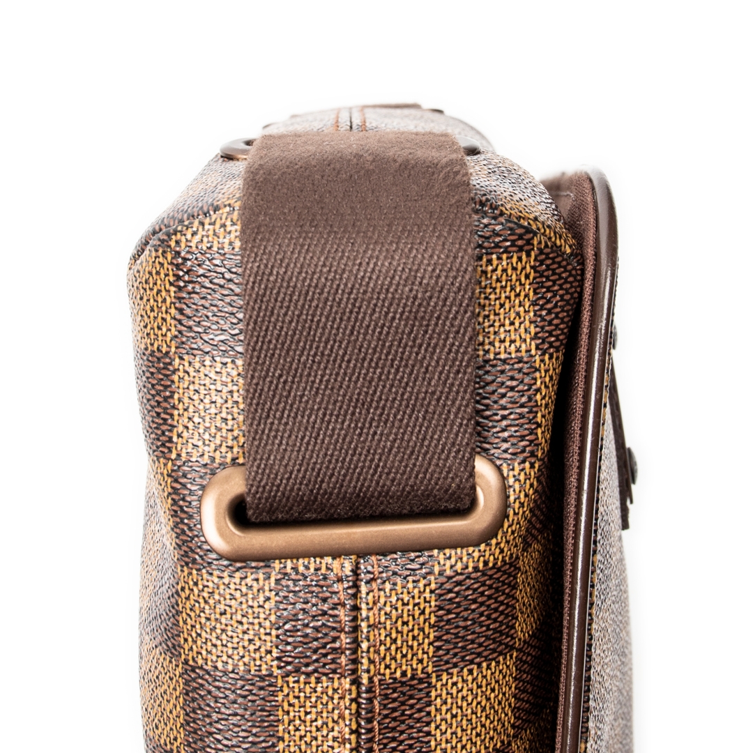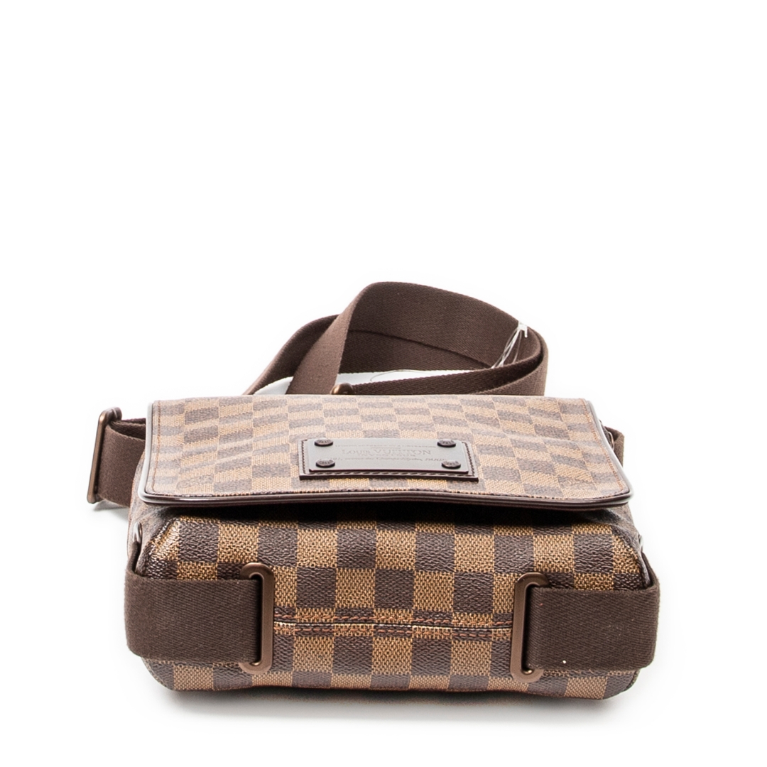 A vintage Louis Vuitton Brooklyn bag crafted in the signature brown coated canvas with the iconic Damier Ebene pattern, finished with coordinating dark leather trim and understated hardware. The structured, compact silhouette is complemented by a front flap design and subtle Louis Vuitton plaque, delivering a refined yet practical everyday style.