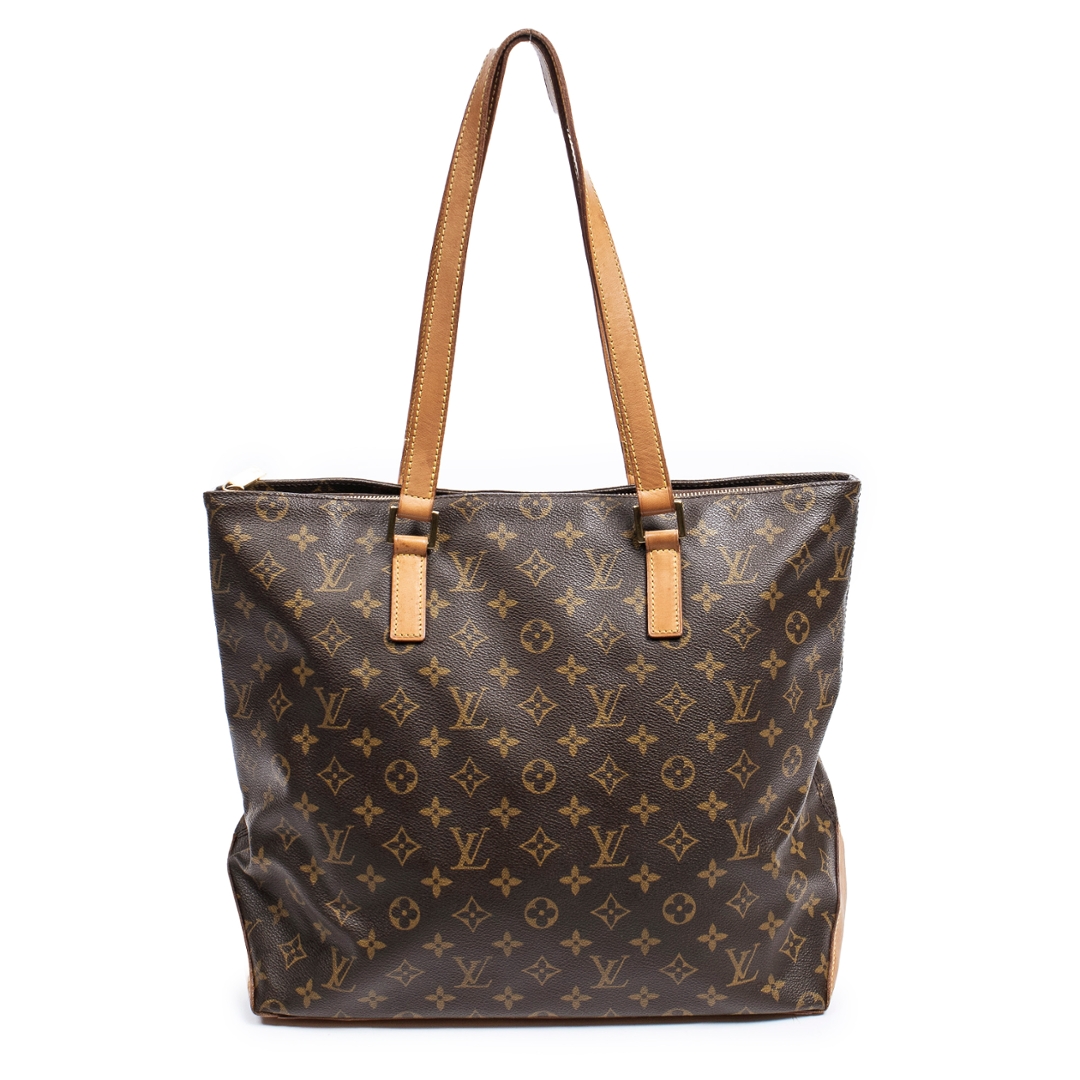 A vintage Louis Vuitton Cabas Mezzo bag crafted in the house’s iconic brown Monogram coated canvas, offering a relaxed and practical tote silhouette suited to everyday use. The soft rectangular shape is complemented by natural leather shoulder straps, subtle gold-tone hardware, and a secure zip-top closure. Measuring approximately 32cm in height and 35cm in width, it provides a spacious and well-balanced profile ideal for carrying daily essentials.