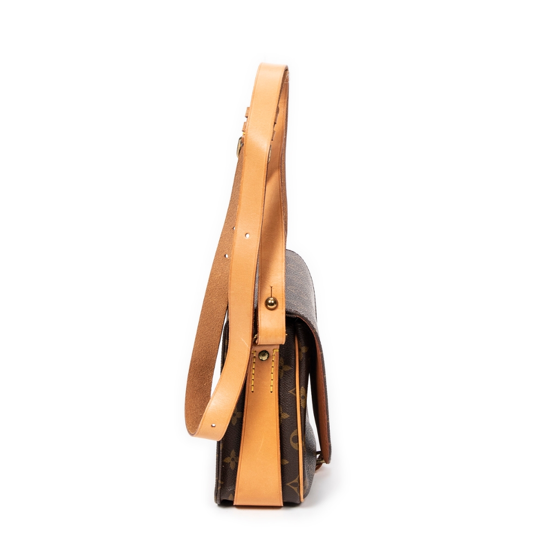 A vintage Louis Vuitton monogram coated canvas Cartouchiere bag with a certificate of authenticity. Approximately 18cm height, 22cm width.