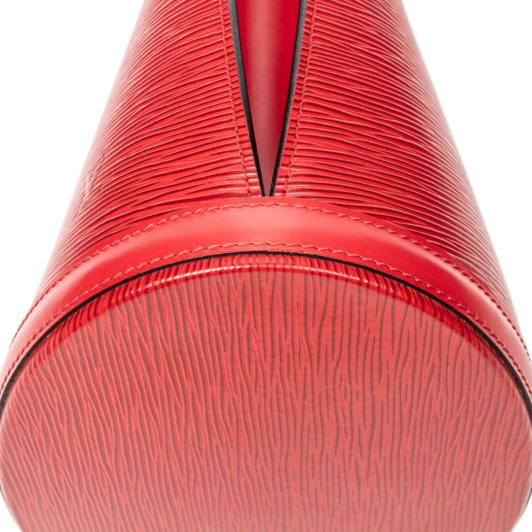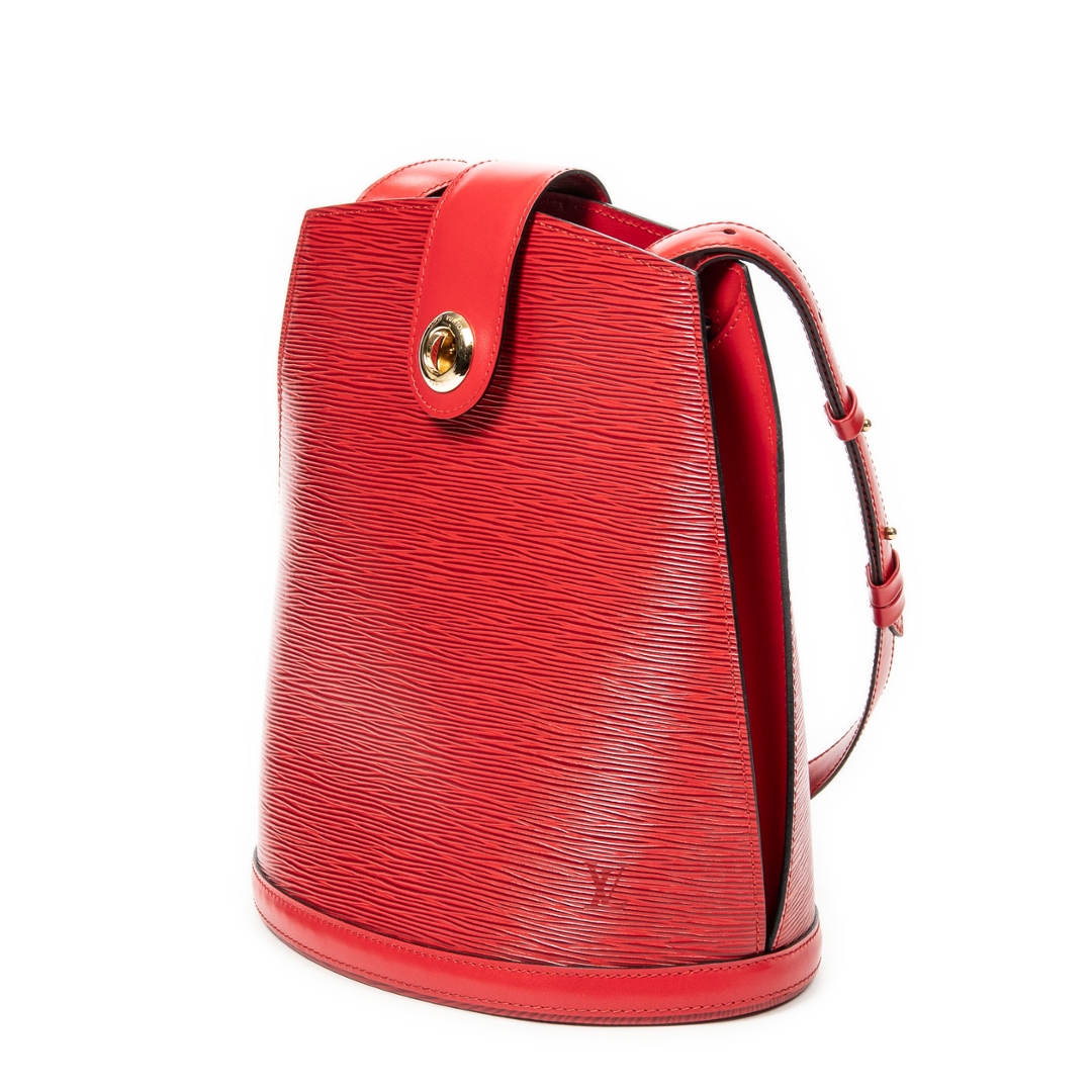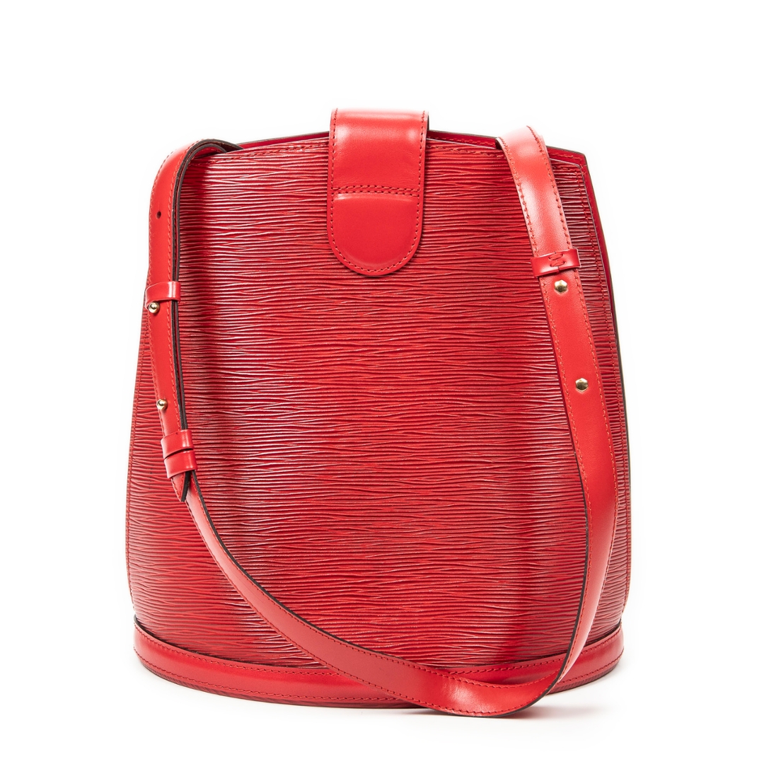 A vintage Louis Vuitton red calf leather Cluny bag with a certificate of authenticity. Approximately 30cm height, 26cm width.