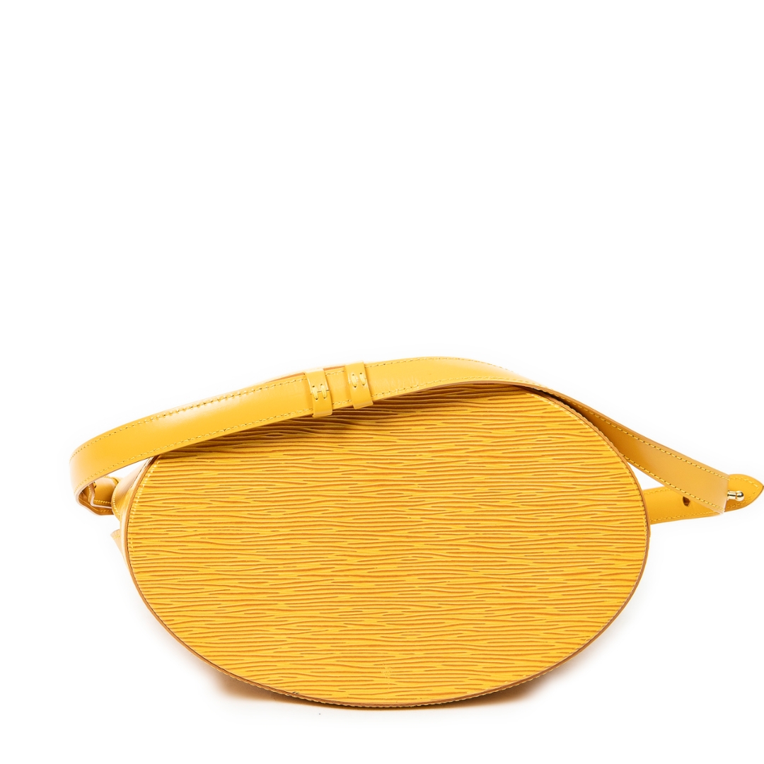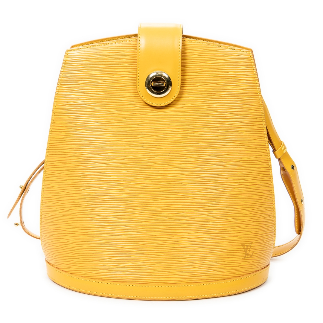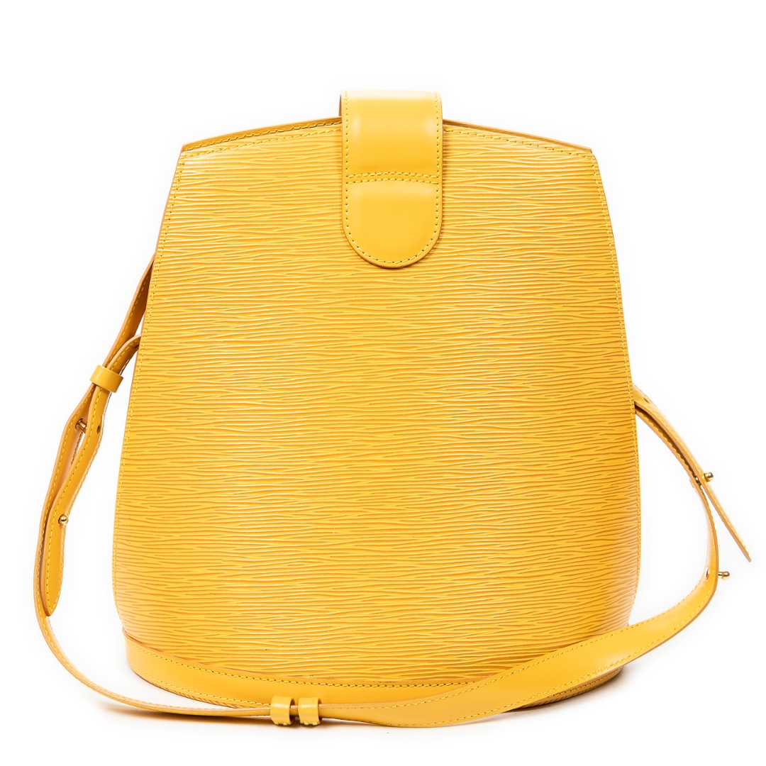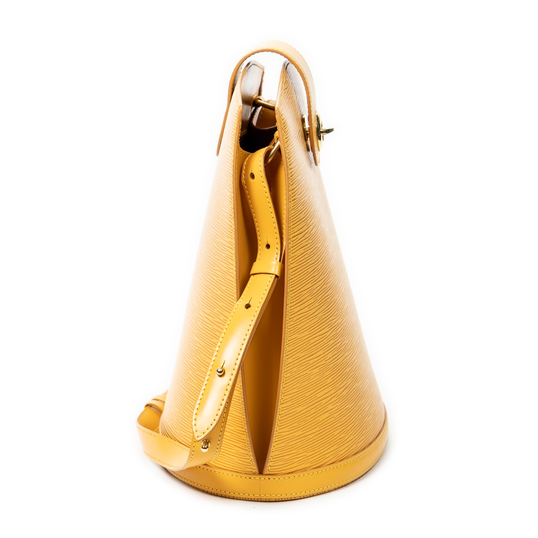 A vintage Louis Vuitton yellow calf leather Cluny bag with a certificate of authenticity, Approximately 30cm height, 26cm width.