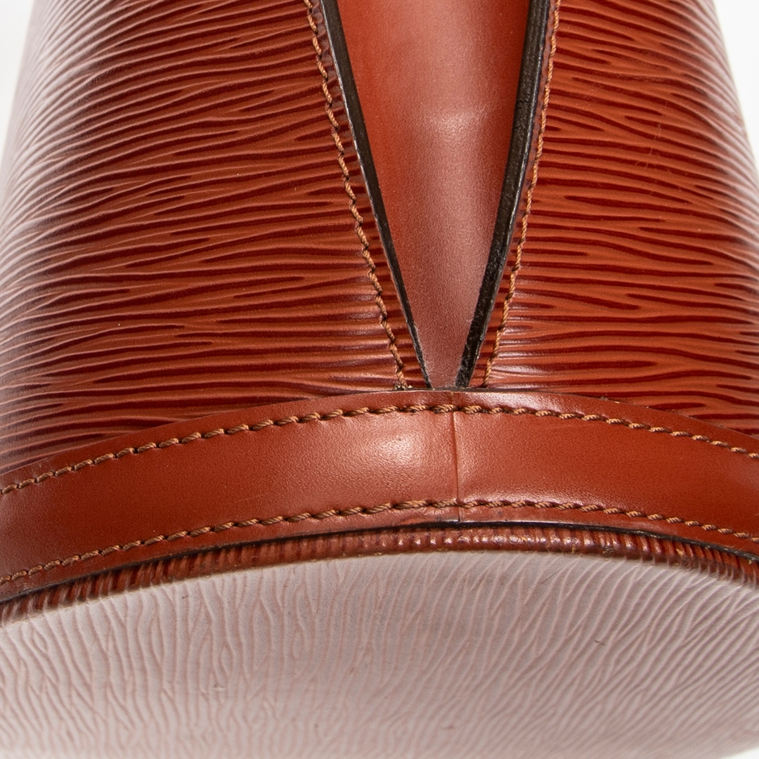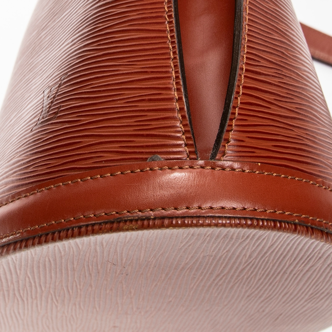 The textured Epi leather exterior delivers both durability and a distinctive finish, paired with a structured base to maintain its form. The interior is thoughtfully arranged to accommodate daily essentials with ease, making it ideal for both professional and casual settings. Subtle Louis Vuitton detailing and warm gold-tone hardware enhance its overall sophistication.