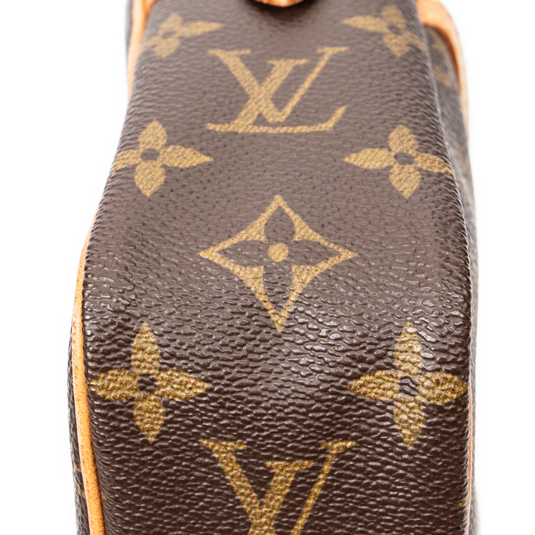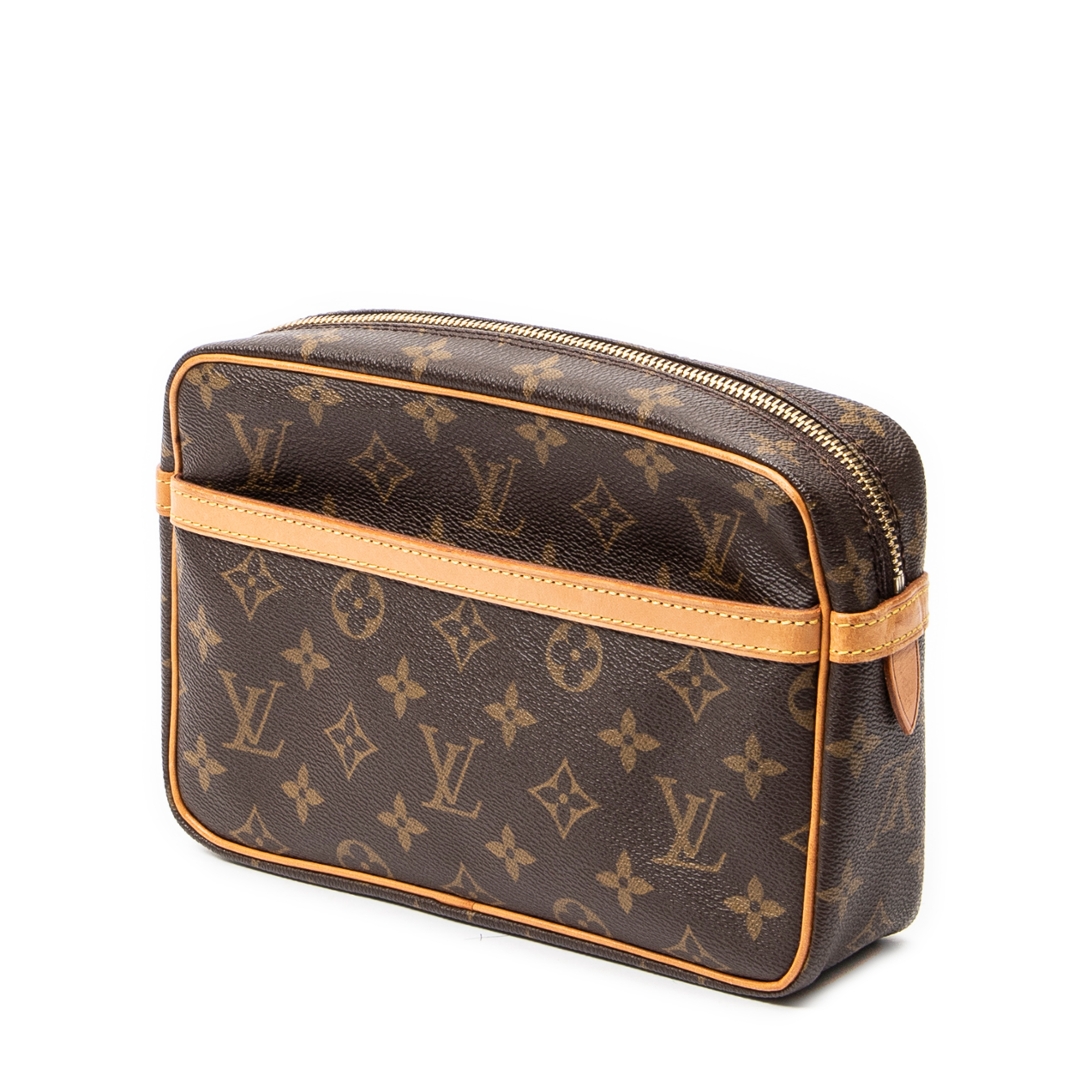 A vintage Louis Vuitton Compiegne bag crafted from the iconic brown coated canvas, featuring the timeless monogram pattern accented with natural leather trim. The compact, structured silhouette is both practical and refined, offering a clean and classic design that has remained popular across generations.
