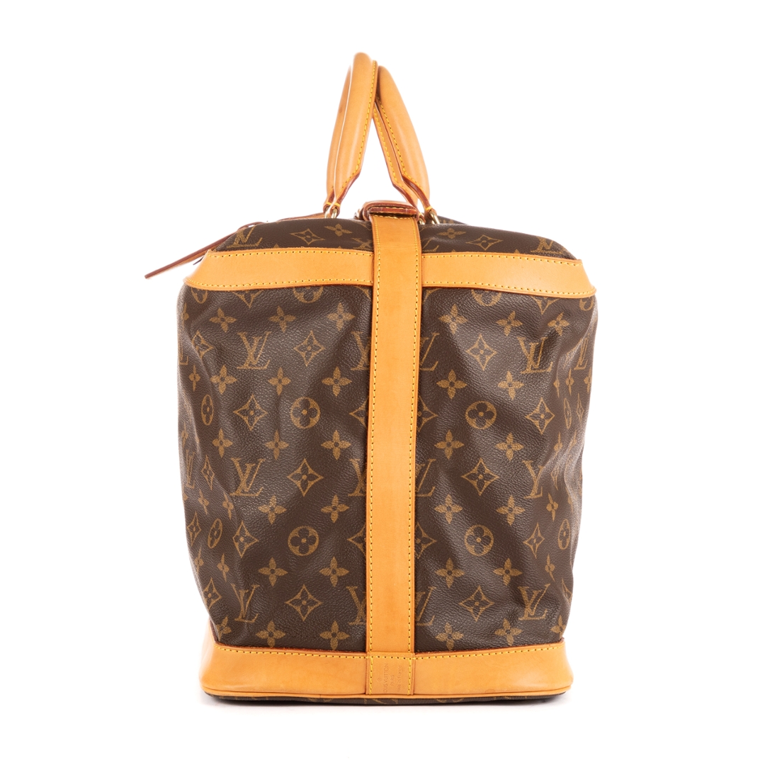 A vintage Louis Vuitton Cruiser bag crafted in the house’s iconic monogram coated canvas, presenting a classic travel-ready silhouette with unmistakable heritage appeal. Accented with natural leather trim, structured top handles, and signature gold-tone hardware, this piece reflects the brand’s legacy of durable craftsmanship and refined design.