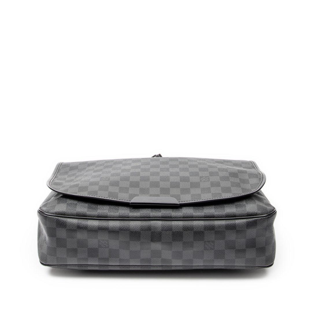 A vintage Louis Vuitton Daniel bag crafted from black and grey coated canvas in the signature Damier pattern, offering a sleek and contemporary take on classic Louis Vuitton design. The structured messenger silhouette is complemented by tonal leather trim and a wide adjustable strap, creating a refined yet practical everyday piece.