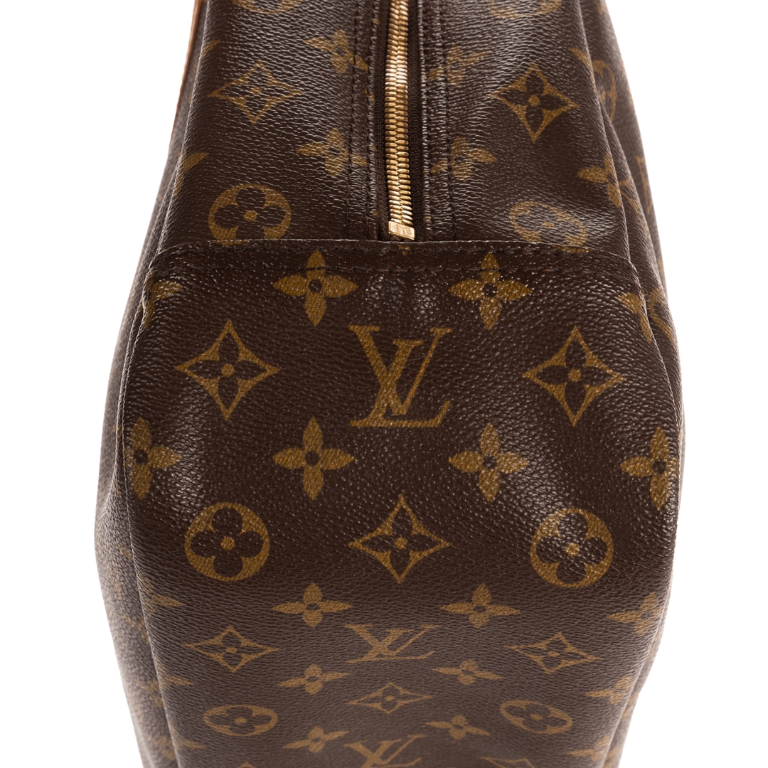 The durable coated canvas exterior is complemented by smooth leather detailing and gold-tone hardware, creating a timeless and instantly recognisable finish. A secure zip-top closure opens to a spacious interior designed for organised storage, while the exterior slip pocket allows quick access to frequently used items. The Deauville remains a staple Louis Vuitton design, valued for its structured form and reliable functionality.