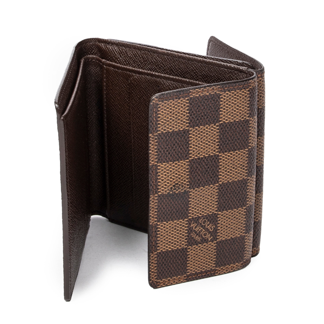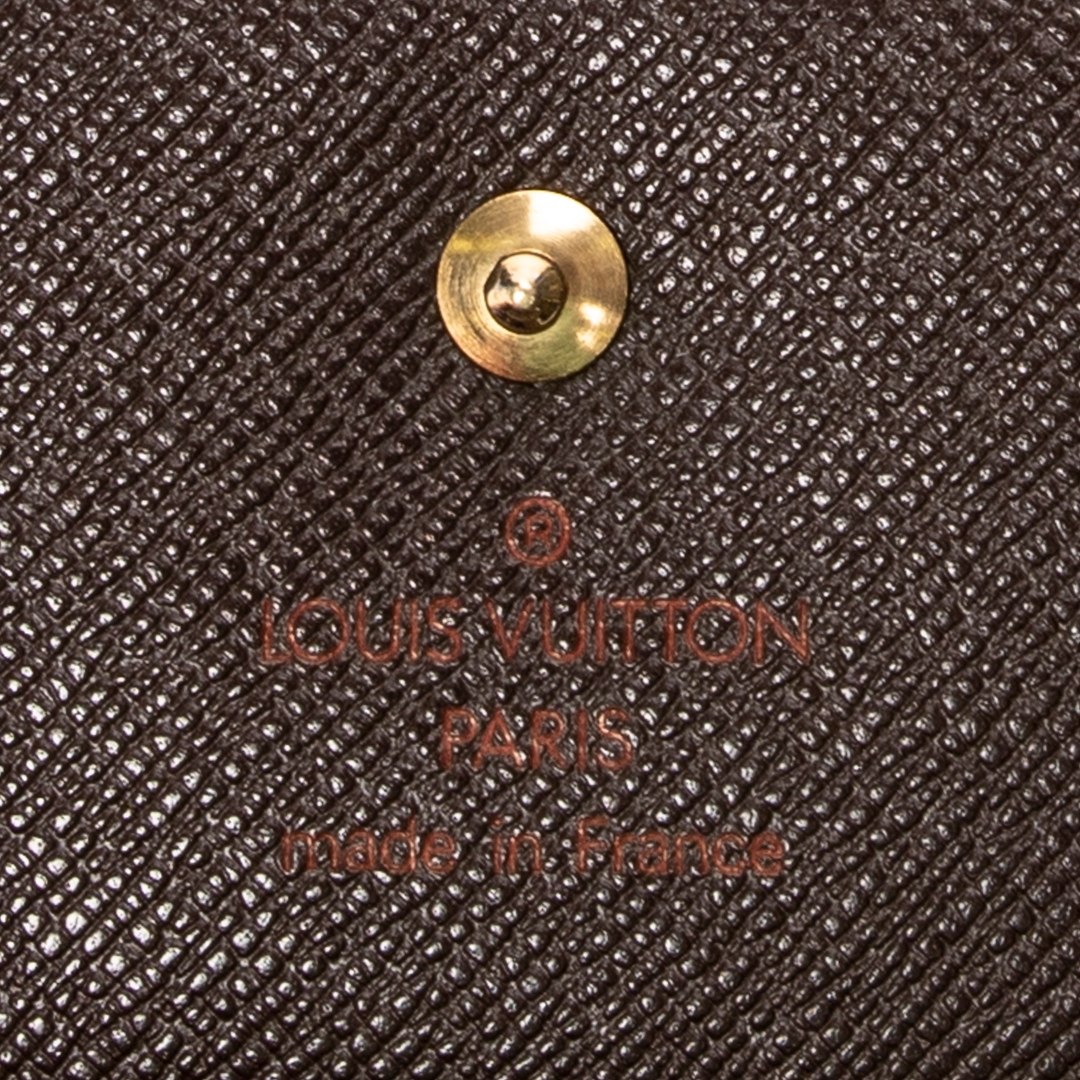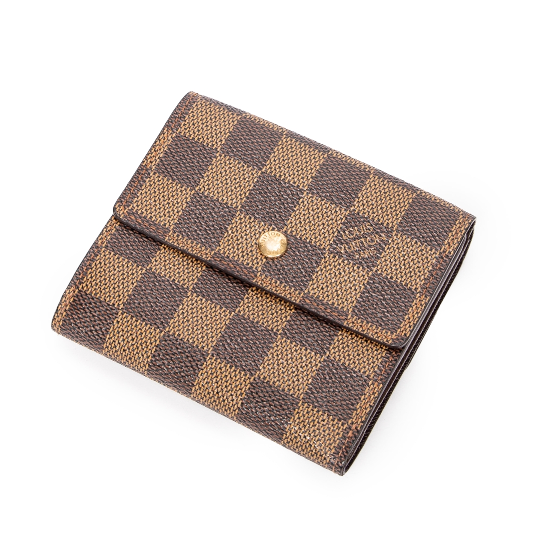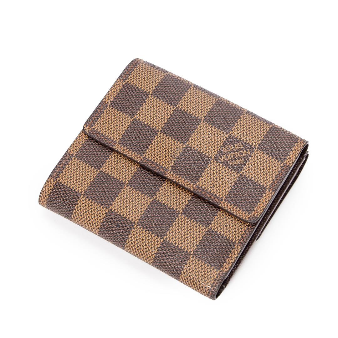 A vintage Louis Vuitton Elise wallet crafted in the classic brown Damier coated canvas, offering a compact and highly practical design. This refined piece showcases the house’s iconic checkerboard pattern, delivering a timeless aesthetic in a neatly proportioned silhouette. Measuring approximately 10cm in height and 11cm in width, it is perfectly sized for everyday convenience.