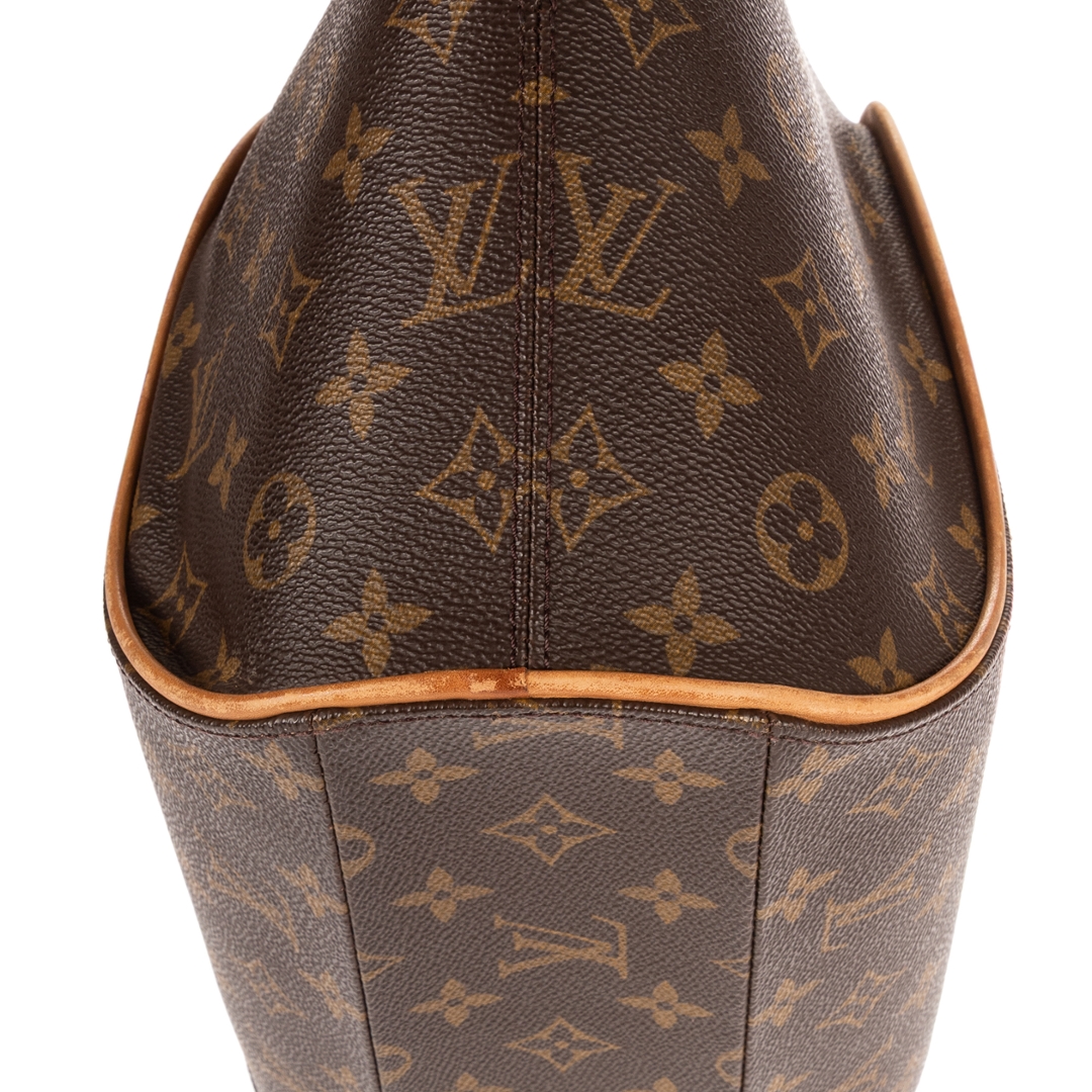 A vintage Louis Vuitton Ellipse bag crafted in the iconic brown Monogram coated canvas, defined by its elegant curved silhouette and structured, sculptural design. This larger variation of the Ellipse offers a bold yet refined presence, staying true to Louis Vuitton’s heritage travel aesthetic. Measuring approximately 33cm in height and 25.5cm in width, it provides a spacious and practical format for everyday use.