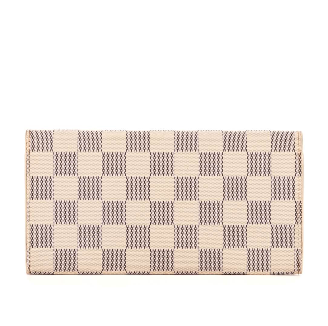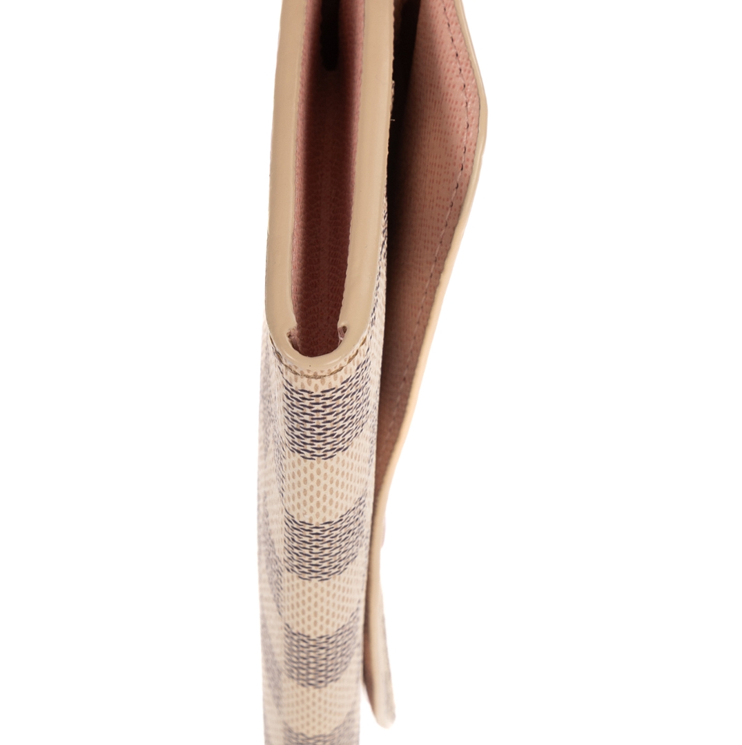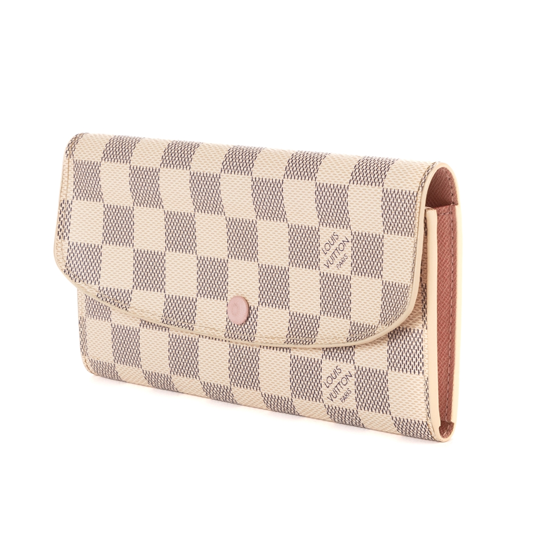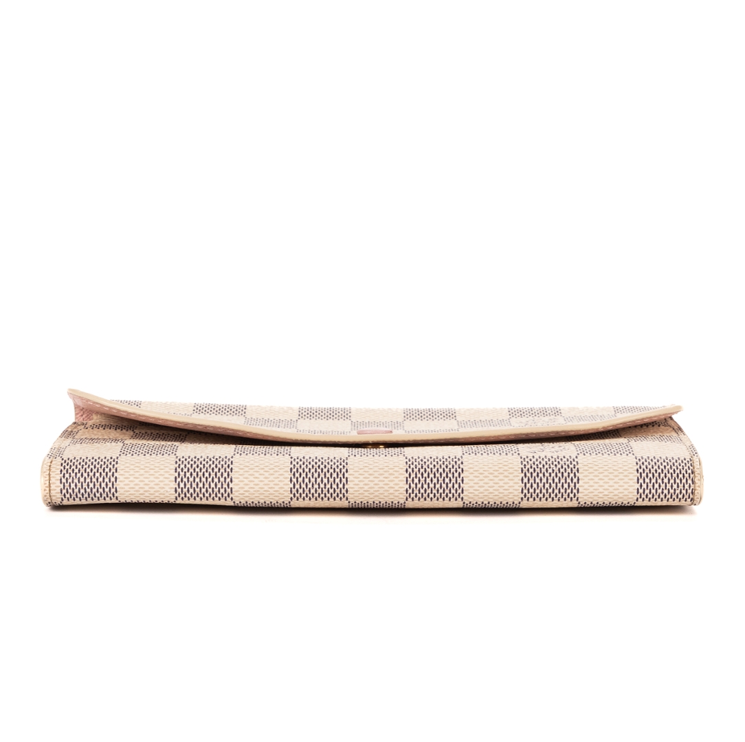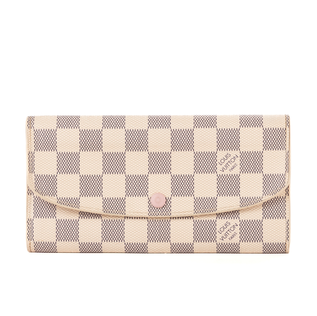 A vintage Louis Vuitton Emilie wallet crafted in the elegant white Damier Azur coated canvas, offering a refined and feminine take on the brand’s iconic check pattern. Sleek and practical in design, this piece measures approximately 9.5cm in height and 19cm in width, making it ideal for everyday use while maintaining a polished, compact profile.