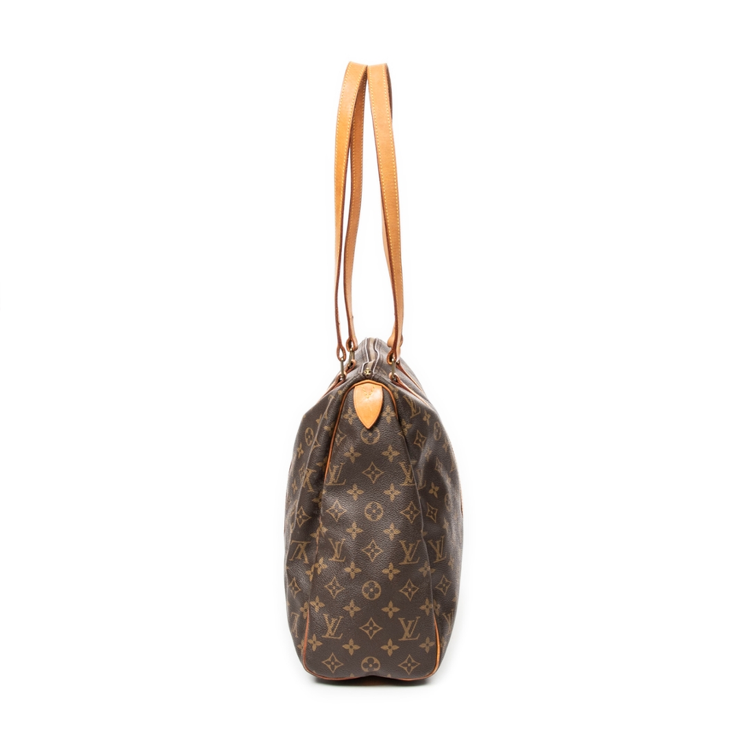 A vintage Louis Vuitton Flanerie bag crafted in the iconic brown Monogram coated canvas, offering a timeless and effortlessly practical design. With its generous proportions of approximately 32cm in height and 45cm in width, this spacious silhouette is perfectly suited for everyday use, travel, or as a stylish carry-all.